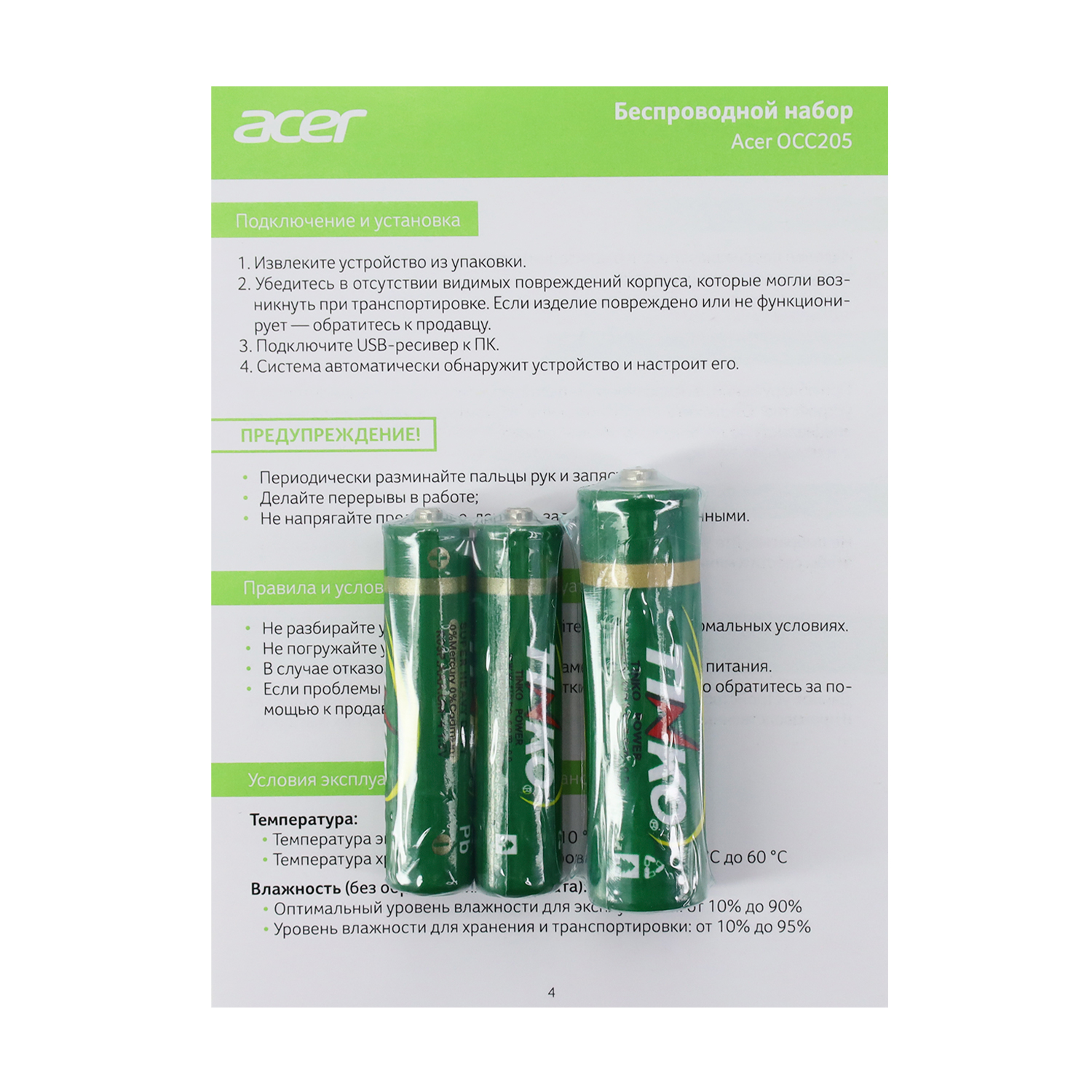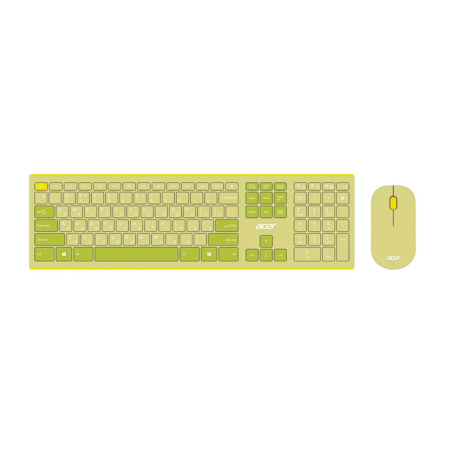Клавиатура Acer Acer OCC205,Зеленый/желтый KeyBoard + mouse, USB, Wireless, rus/lat, Green/Yellow