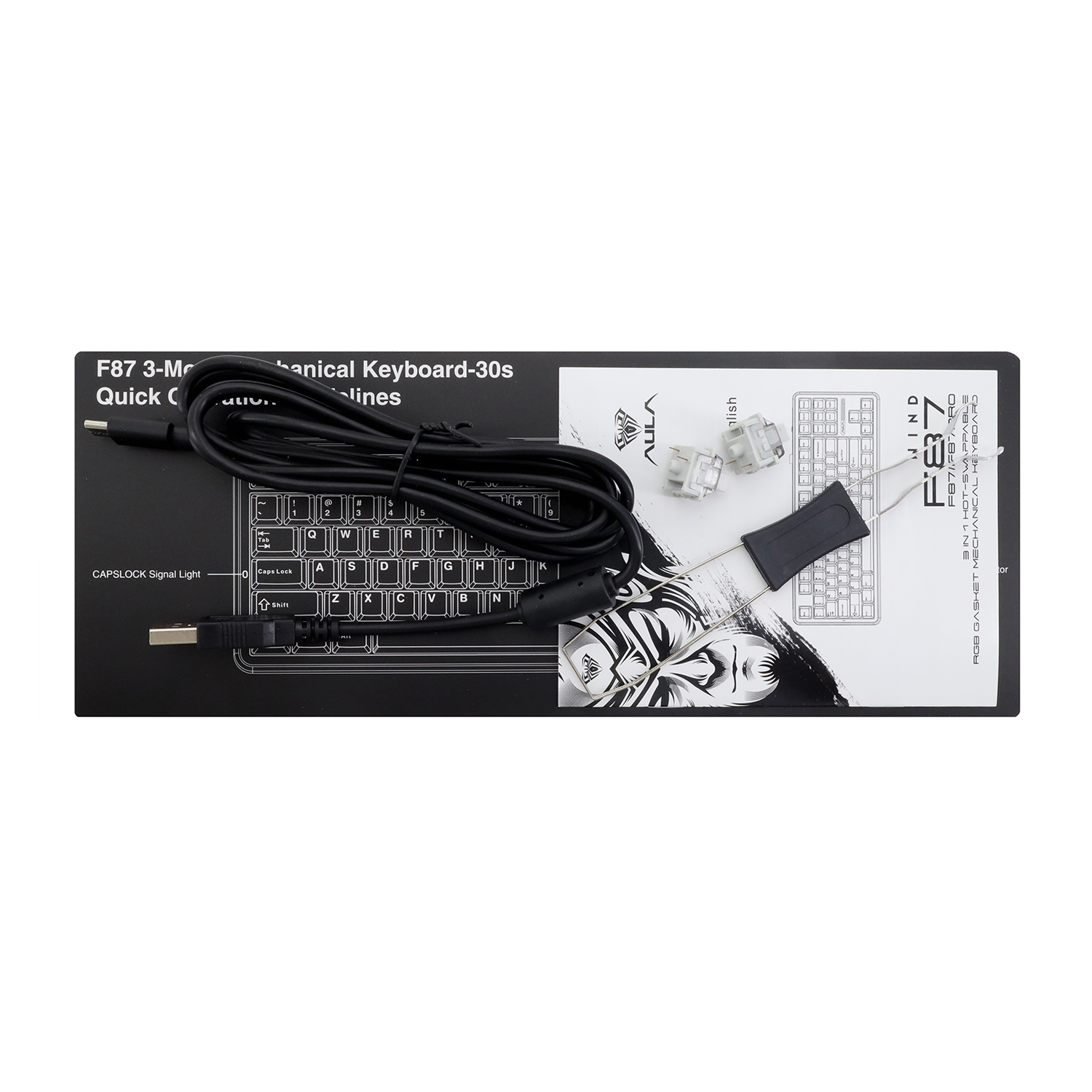 Клавиатура Bluetooth, Aula F87 3в1 , KeyBoard 3in1, BT/wireless/Type-C, mechanical, Black-dark Blue-orange