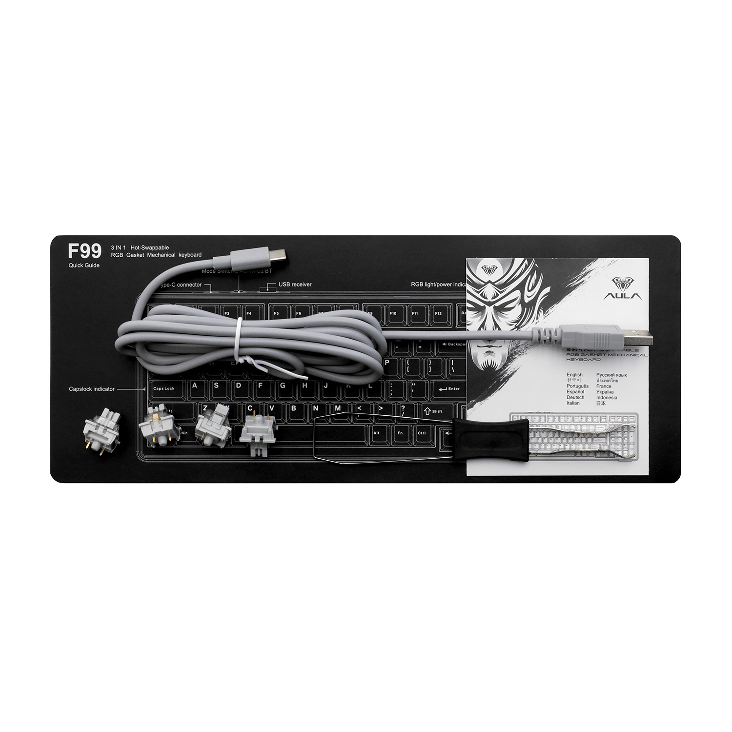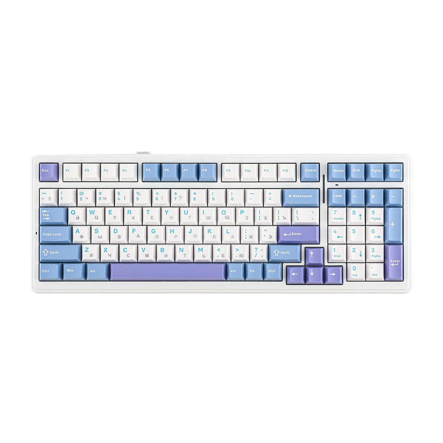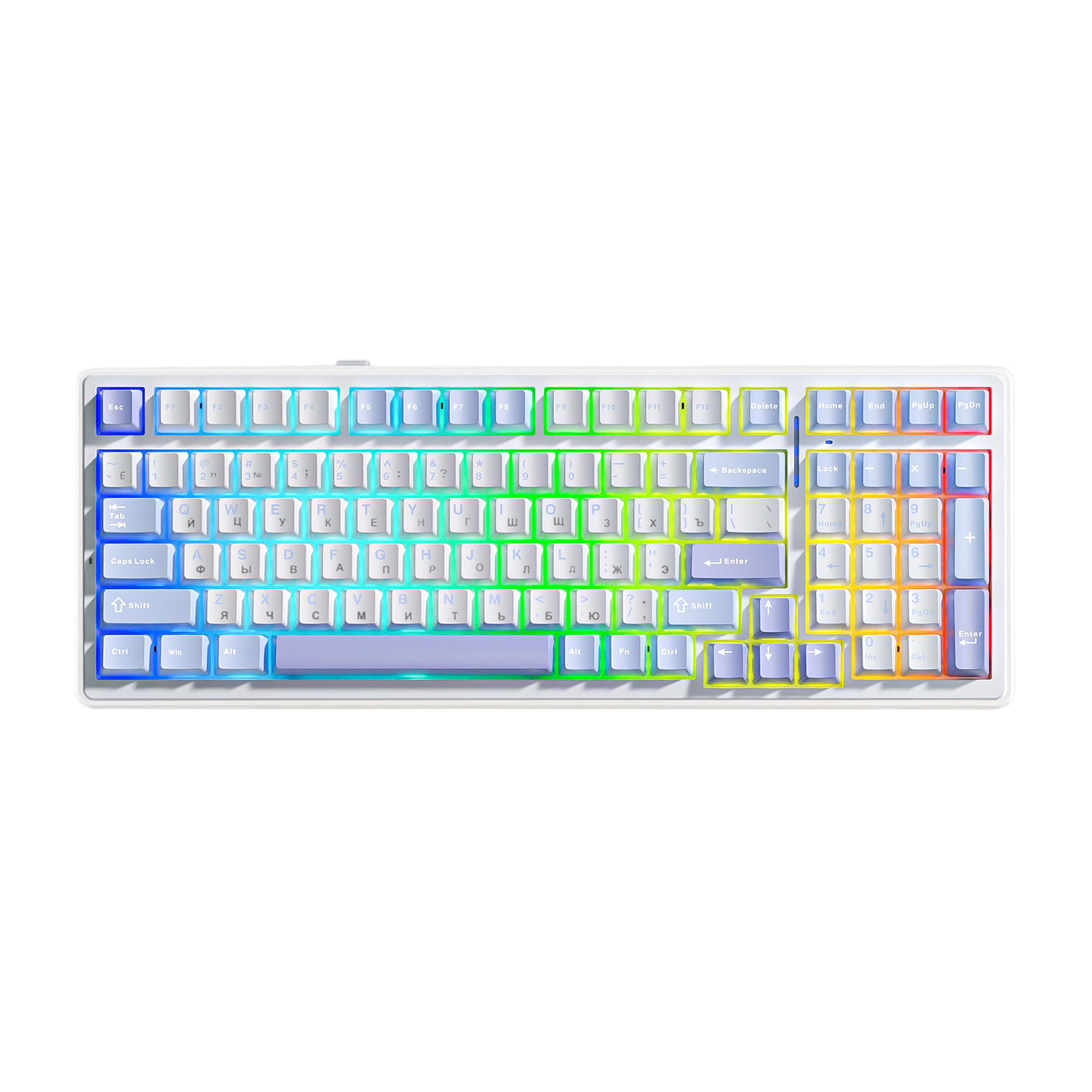 Клавиатура Bluetooth, Aula F99, Белый-голубой-фиолетовый KeyBoard BT/wireless/Type-C, mechanical, white-blue-purple