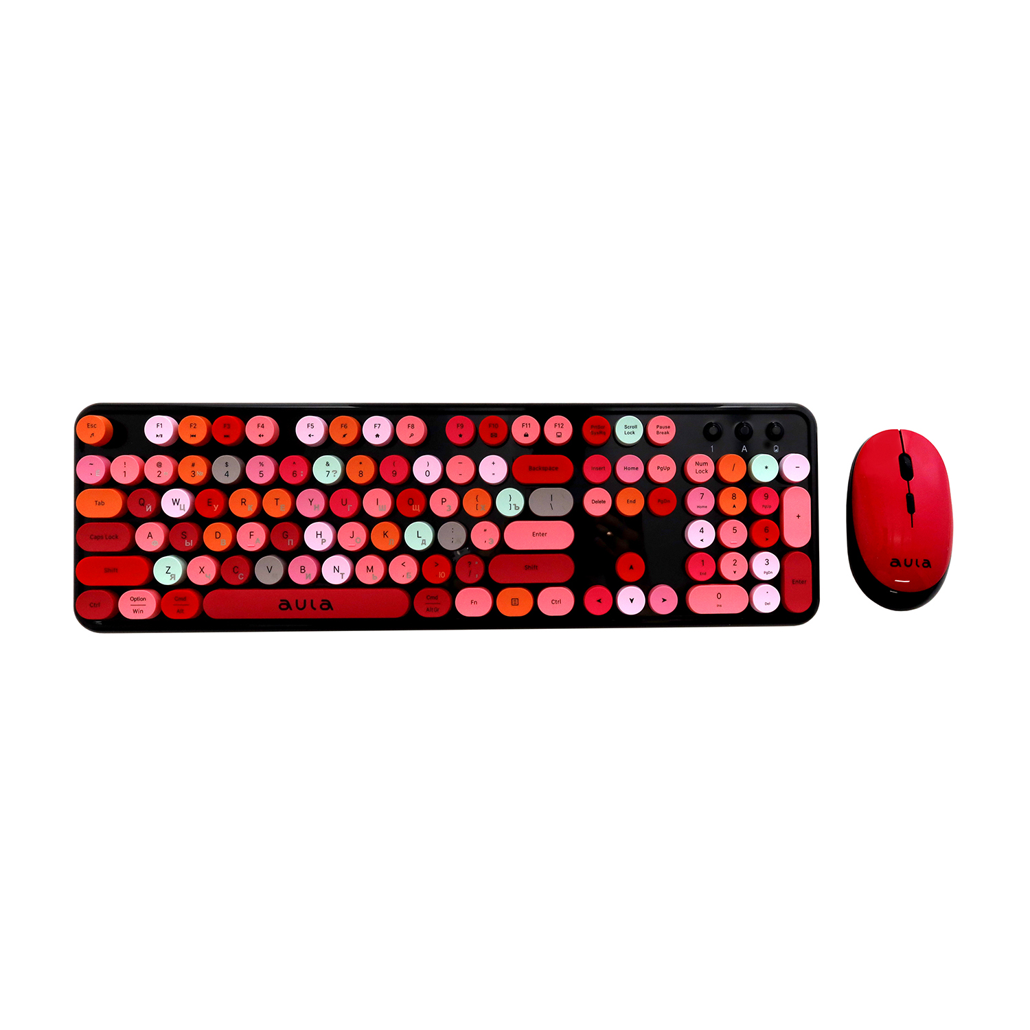 Клавиатура и мышь беспроводные, Aula AC306 Barbara, Черный+разноцветный KeyBoard + mouse Wireless, 2AA, black-colorful