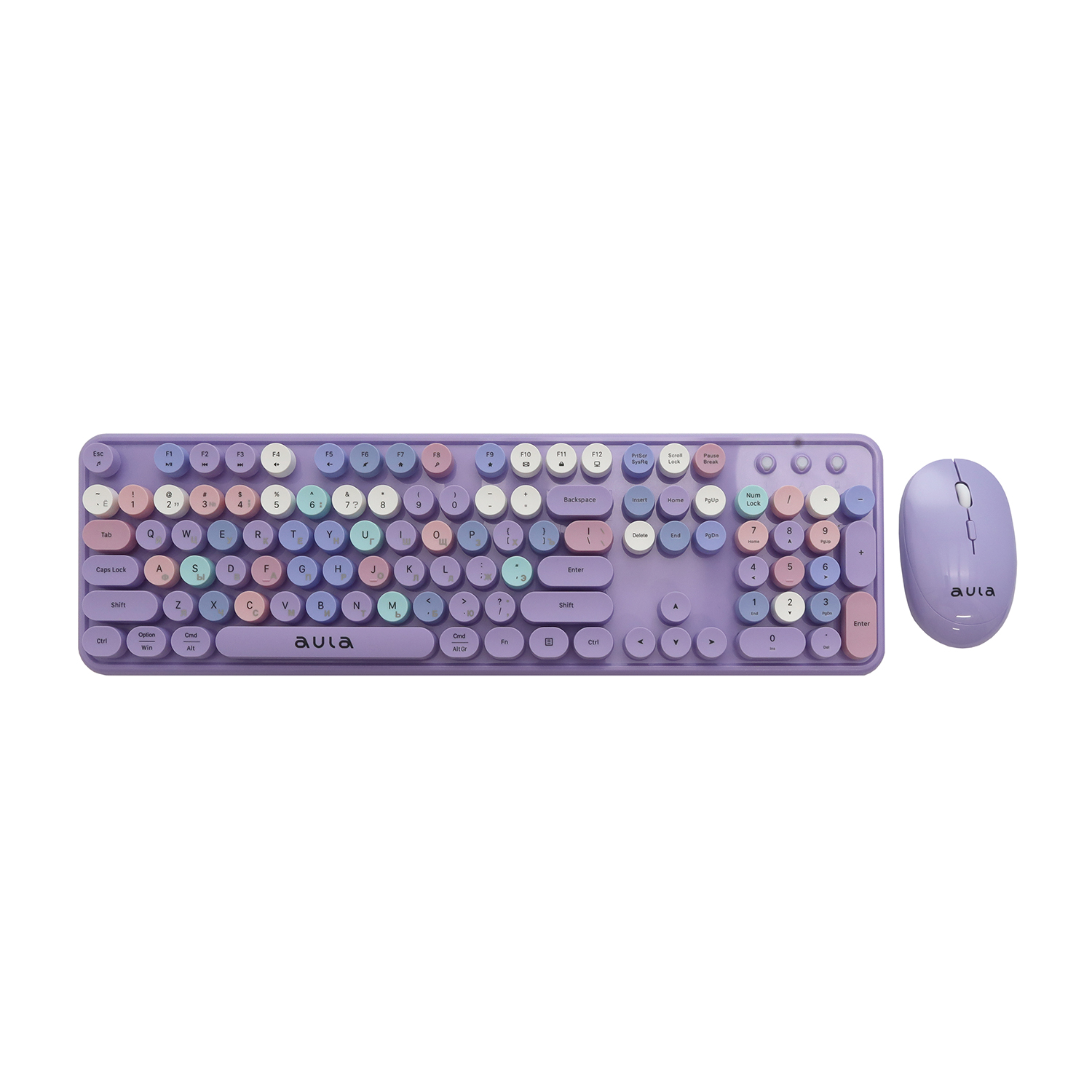 Клавиатура и мышь беспроводные, Aula AC306 Barbara, Лиловый+разноцветный KeyBoard + mouse Wireless, 2AA, purple-colorful