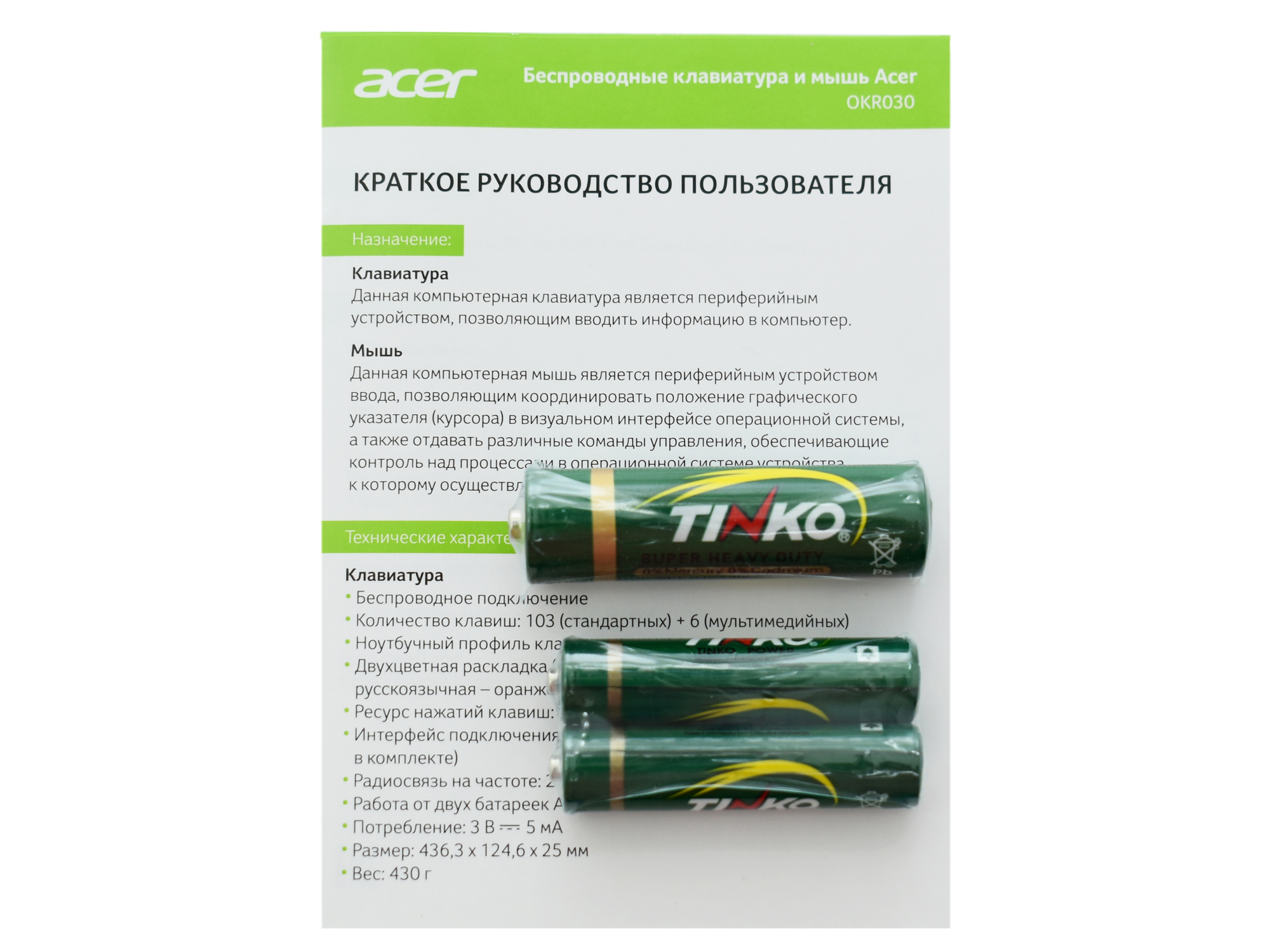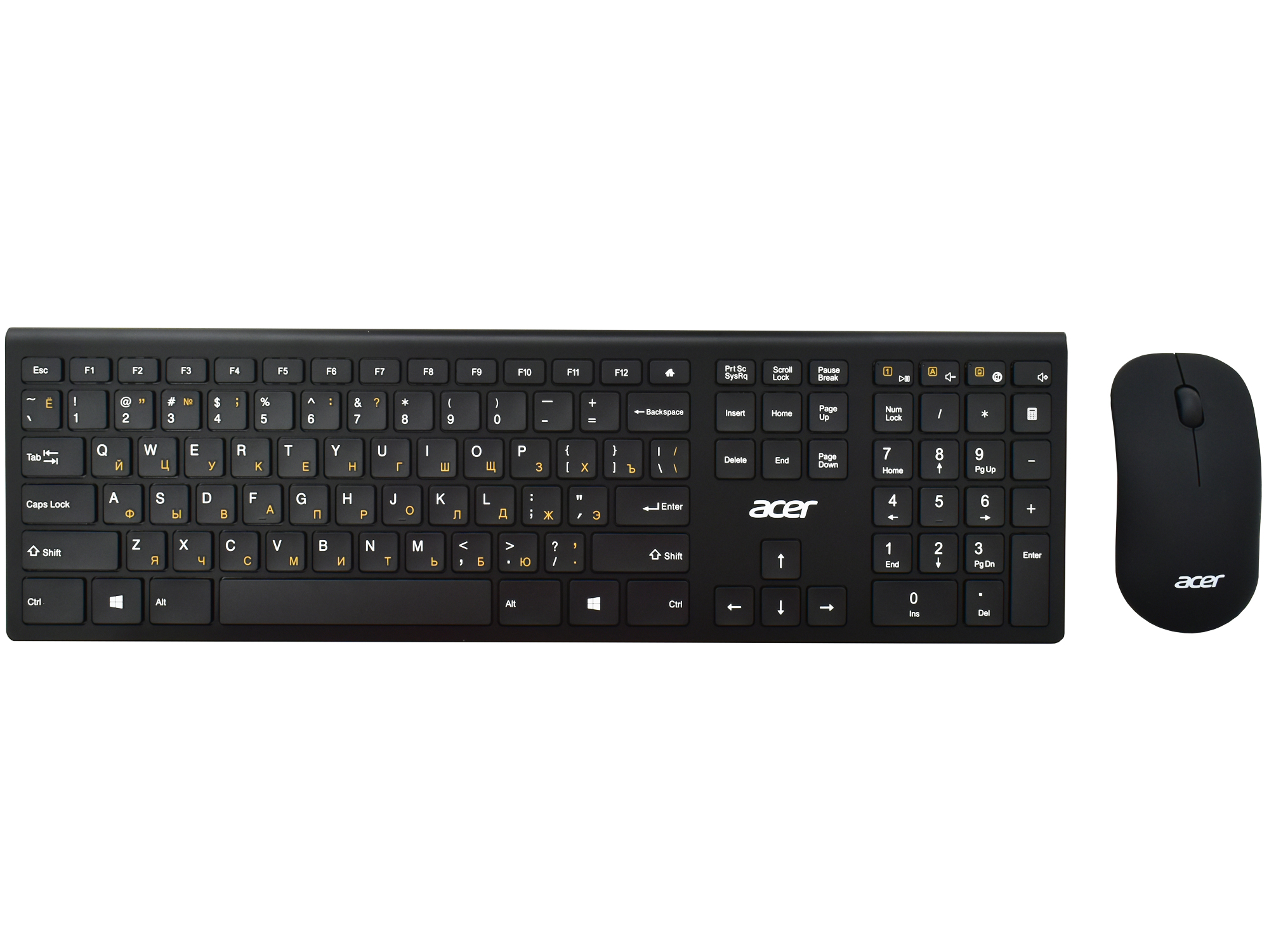 Клавиатура и мышь, USB, Acer OKR030 KeyBoard + mouse, Wireless, 103+6 bottons, rus/lat, black