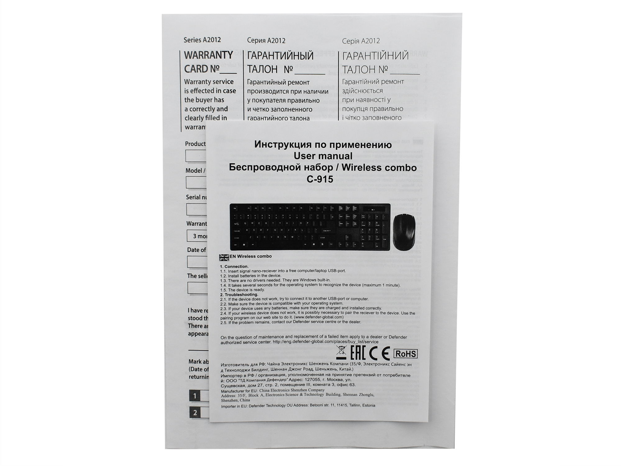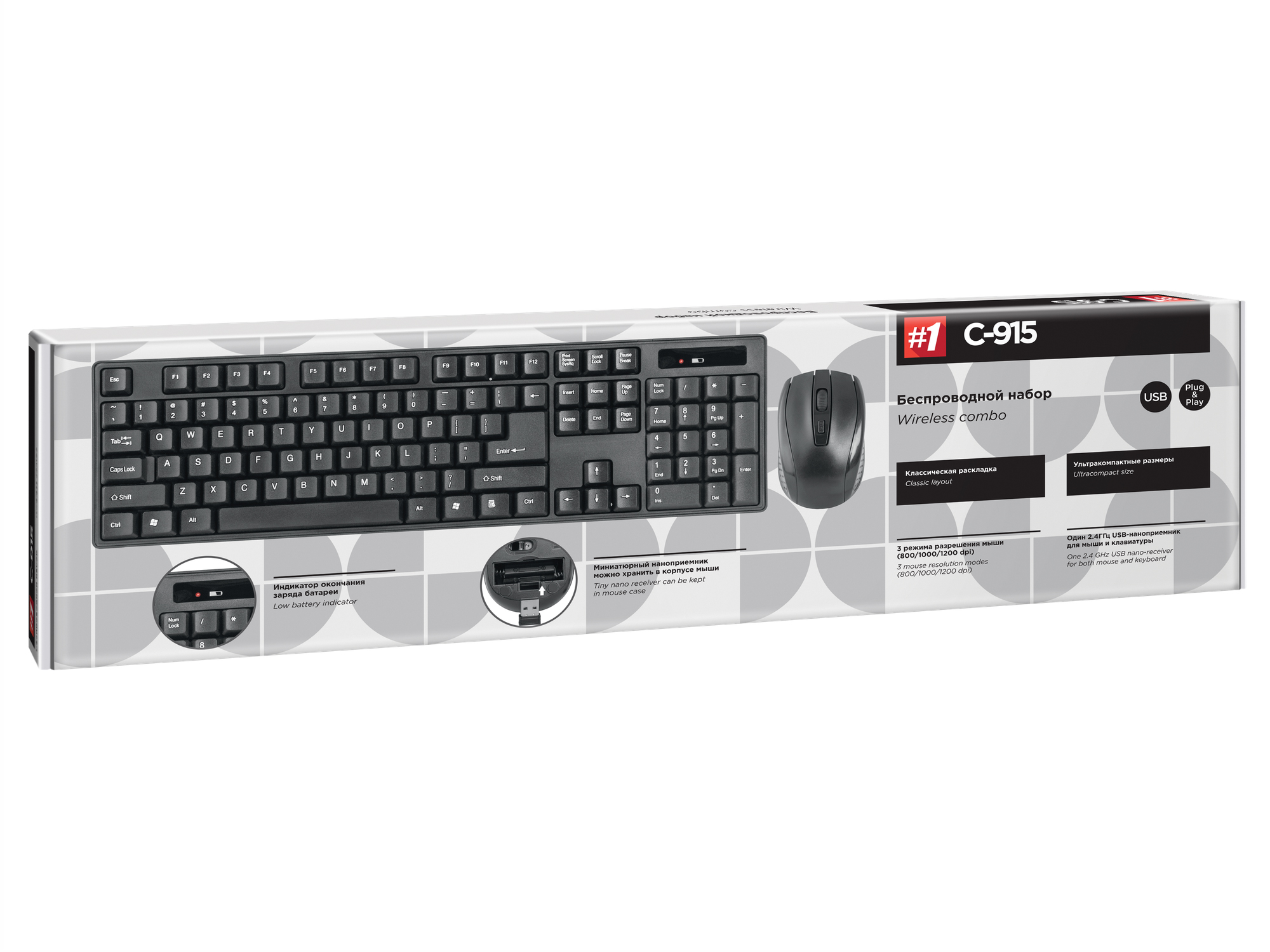 Клавиатура и мышь, USB, Defender C-915 RU, Черный (45915) KeyBoard + mouse, black