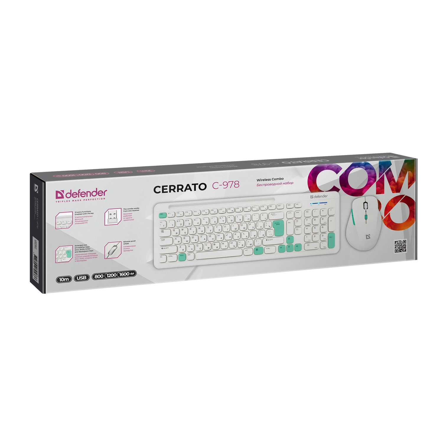 KKeyBoard + mouse, USB, Defender Cerrato C-978 RU, White, (45978)