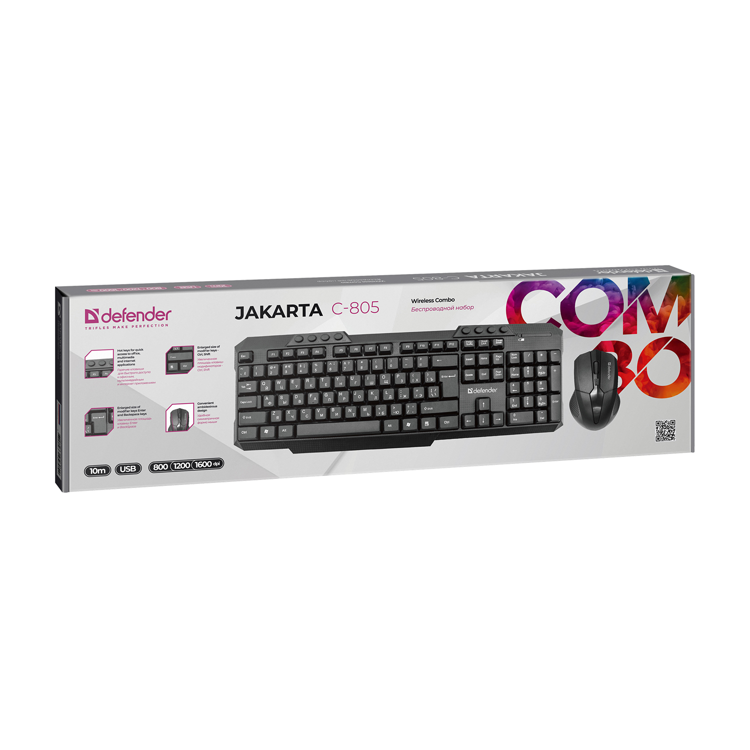 Клавиатура и мышь, USB, Defender JAKARTA C-805 RU, Черный (45804) KeyBoard + mouse, wireless, black