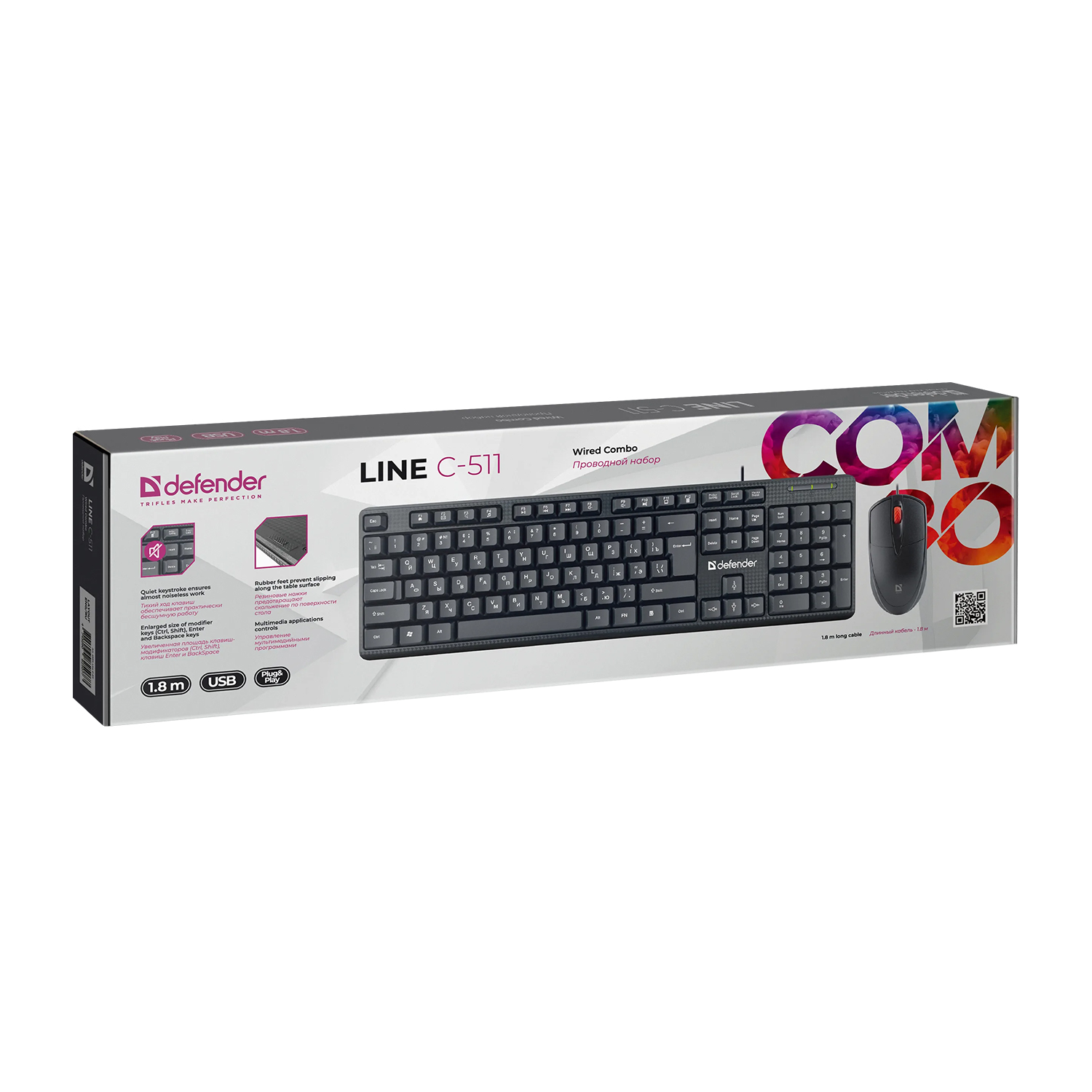 Клавиатура и мышь, USB, Defender Line C-511, Черный (45511) KeyBoard + mouse, black