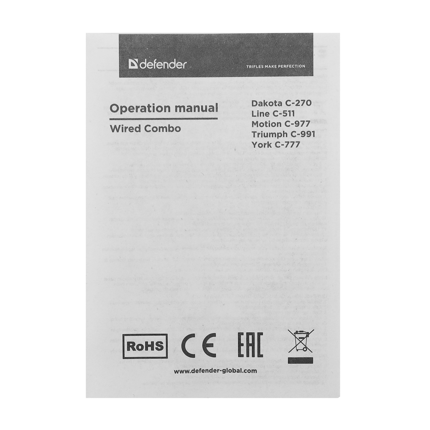 KeyBoard + mouse, USB, Defender Line C-511, black (45511)