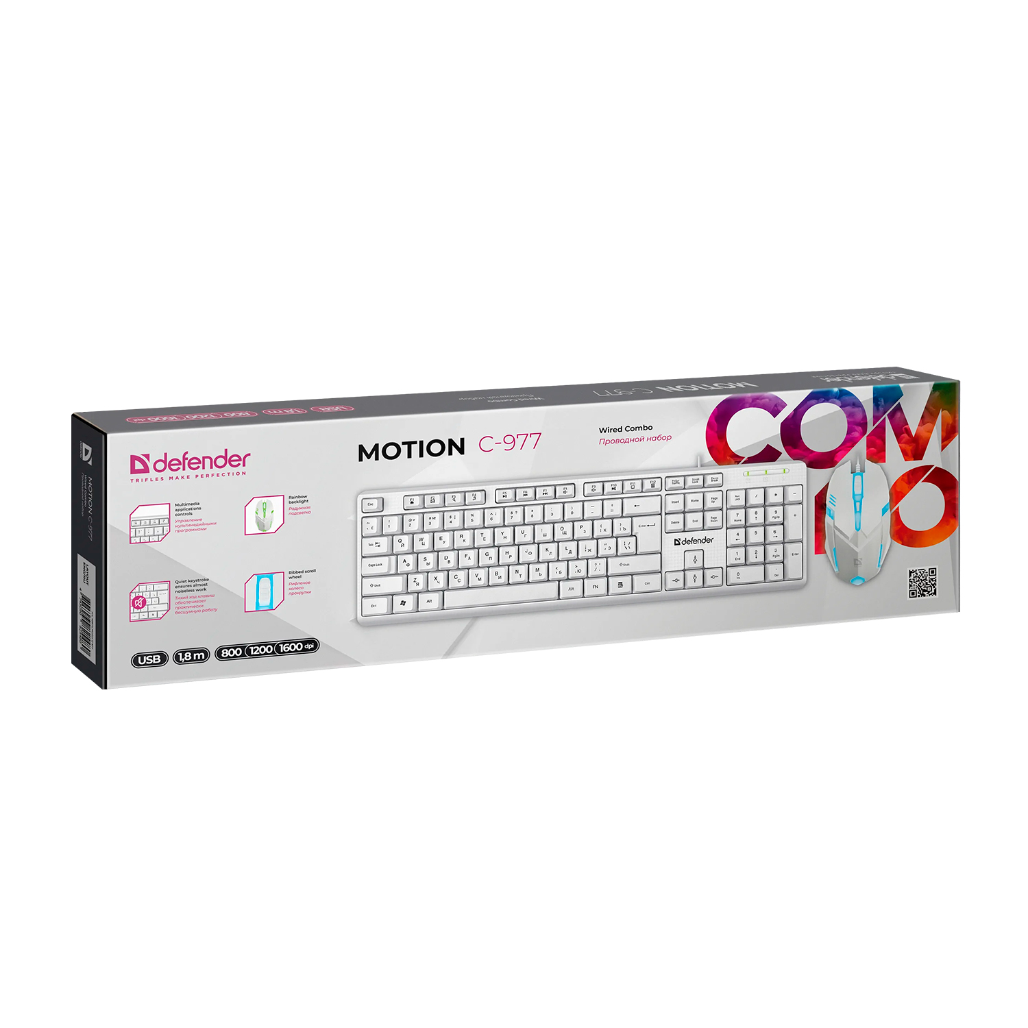 Клавиатура и мышь, USB, Defender Motion C-977 RU, Белый (45977) KeyBoard + mouse, White