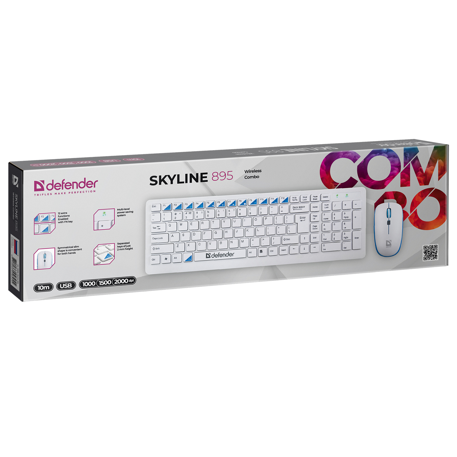 Клавиатура и мышь, USB, Defender Skyline 895 Nano, Белый (45895) KeyBoard + mouse, wireless, white