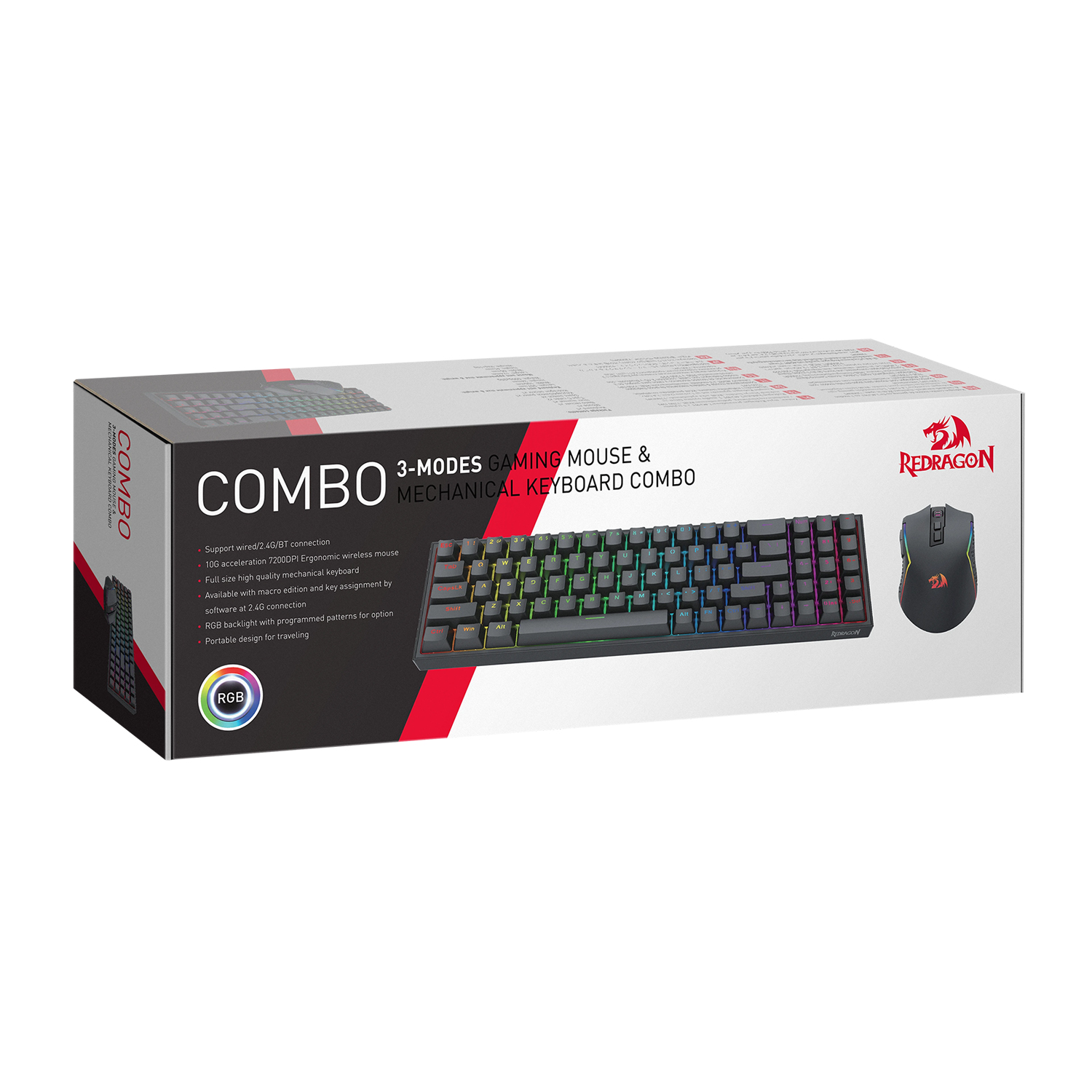 KeyBoard + mouse, USB,Redragon S136, BT/2.4G, Black (72158)