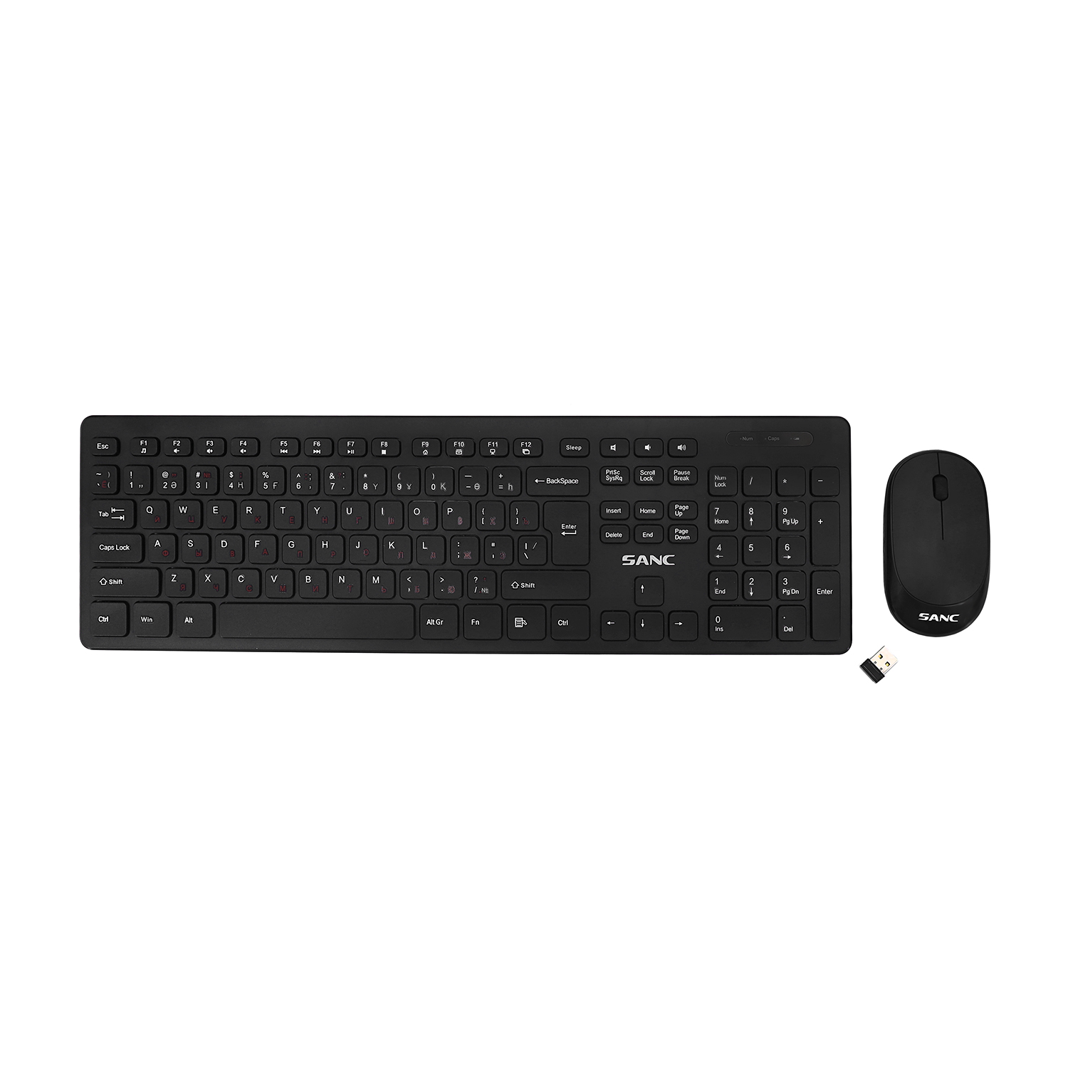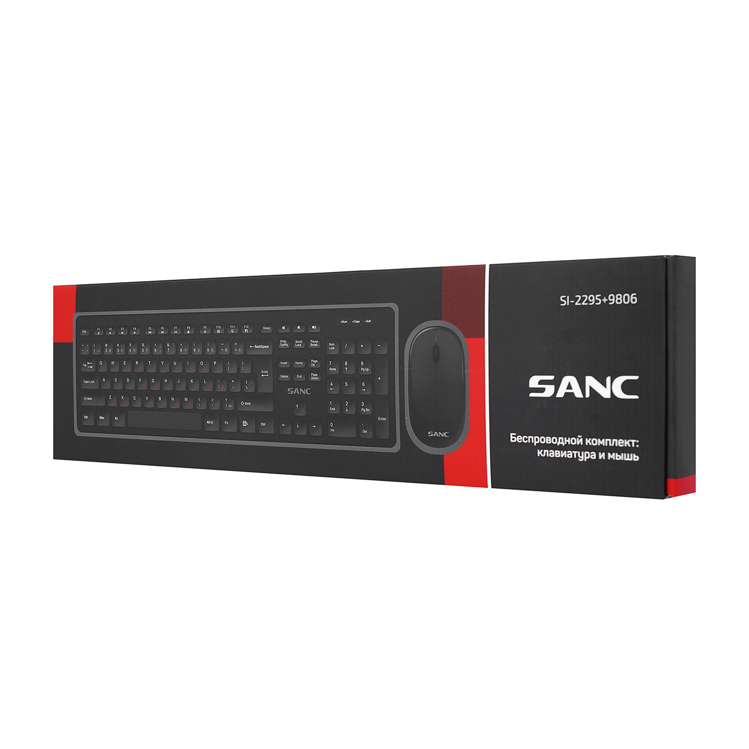 Клавиатура и мышь, USB, Sanc SI-2295+9806, Черный KeyBoard + mouse, wireless, 1AAA/1AA(No battery), dpi 1200,kaz/rus/lat, Black