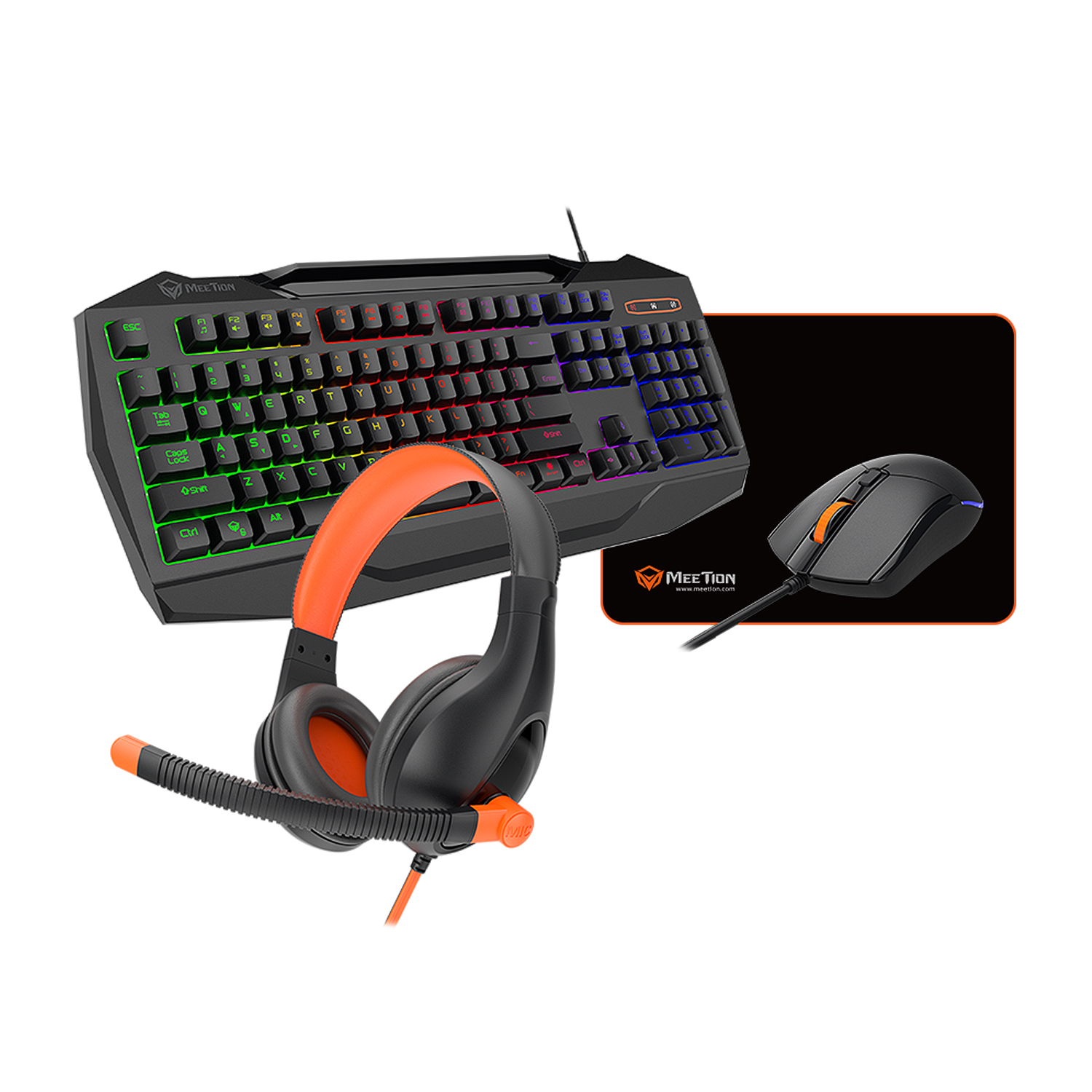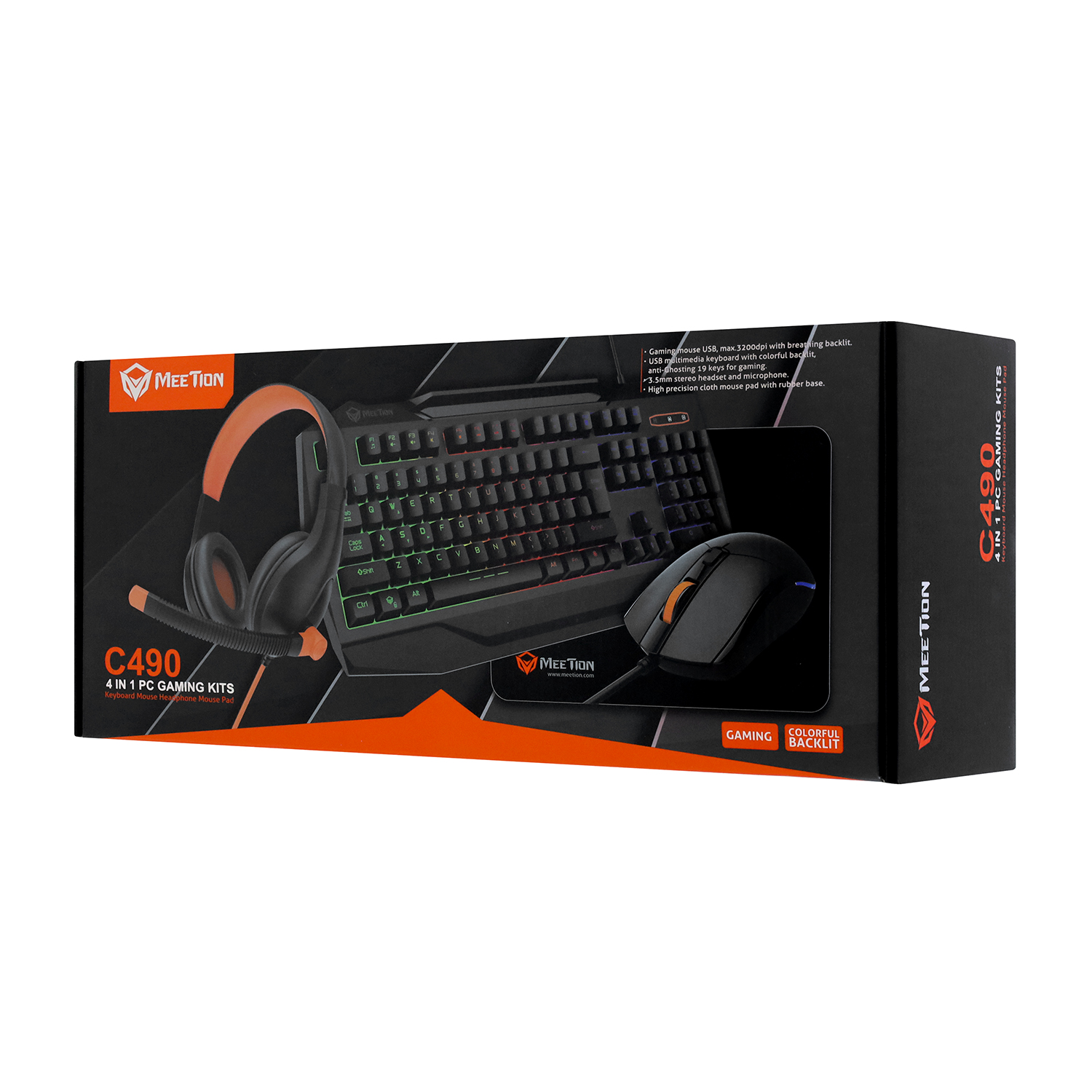 KeyBoard + mouse+pad+headphone, USB, MeeTion C490, black