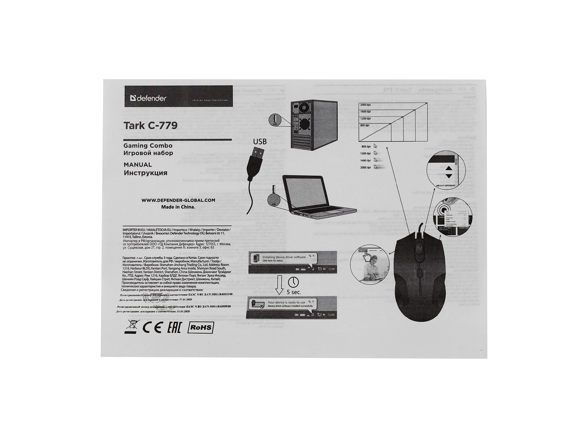 Клавиатура+мышь+коврик для мыши, USB, Defender TARK C-779, (52779) KeyBoard + mouse+pad, black