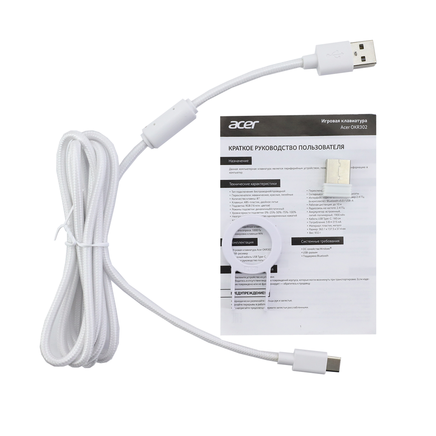 KeyBoard USB, Acer OKR302, 100 buttons, Outemu Red, rus/lat, White/Blue