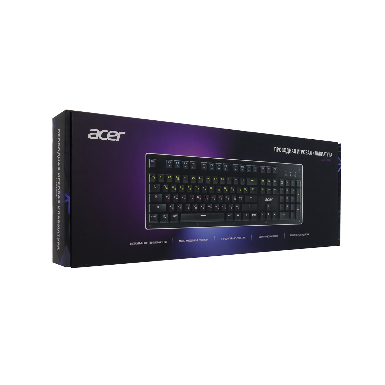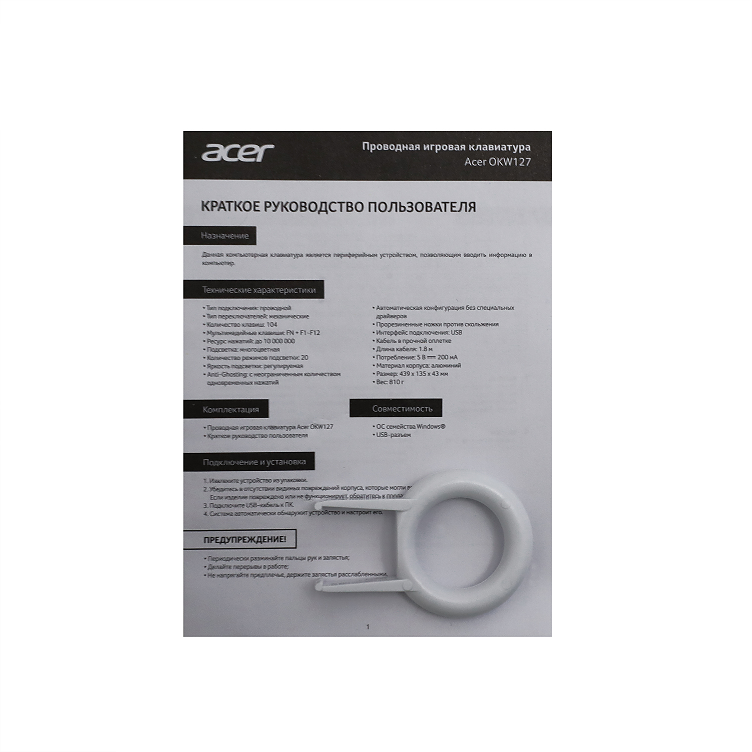 Клавиатура USB, Acer OKW127, Черный KeyBoard 104 buttons, rus/lat, Black