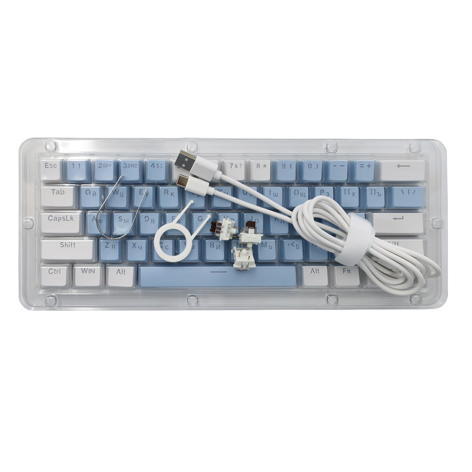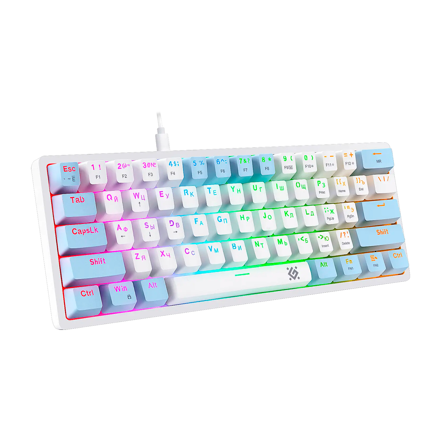 Клавиатура USB, Defender Amox GK-585 RU, Белый-голубой, (45585) KeyBoard White-blue