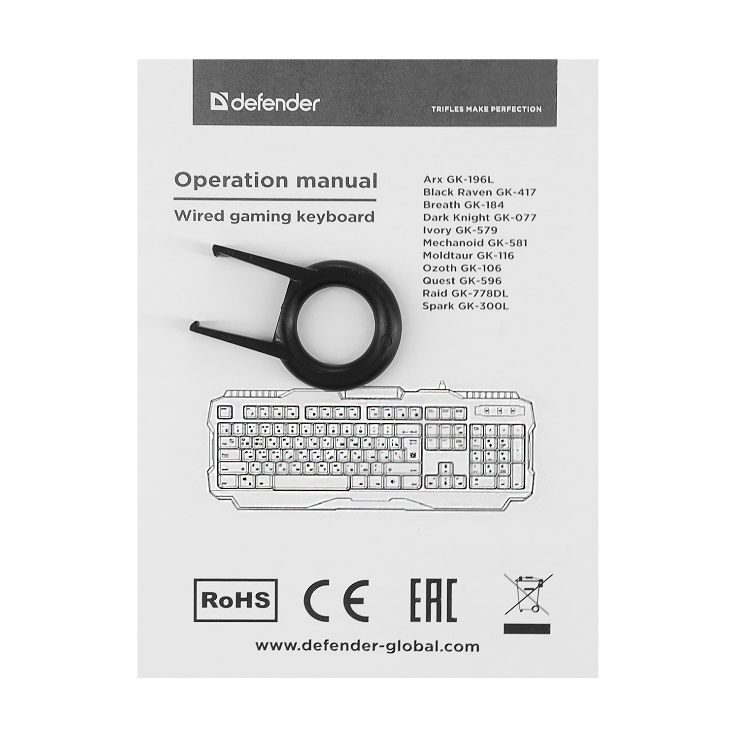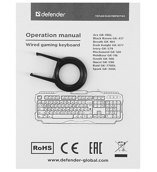 Клавиатура USB, Defender Black Raven GK-417 RU, Черная KeyBoard Black, (45414)