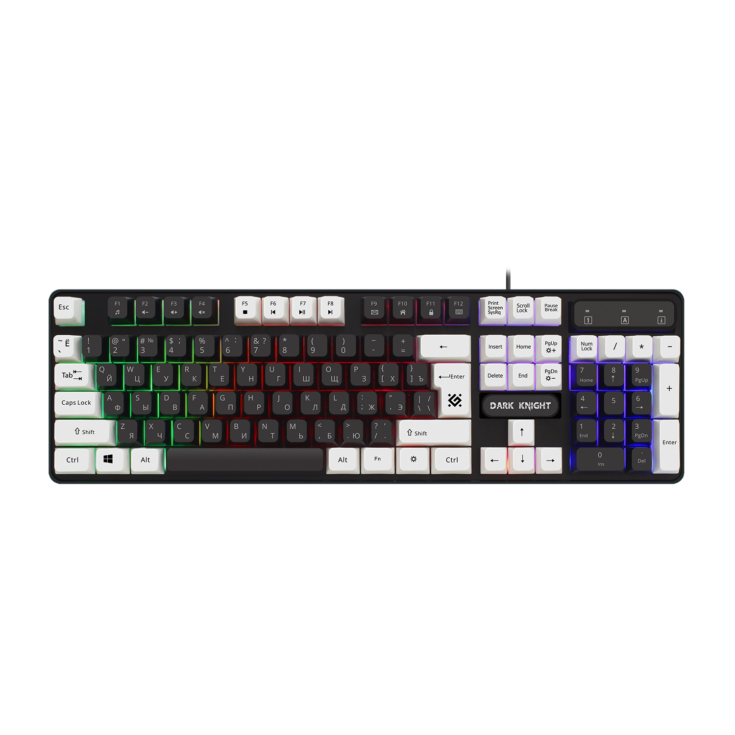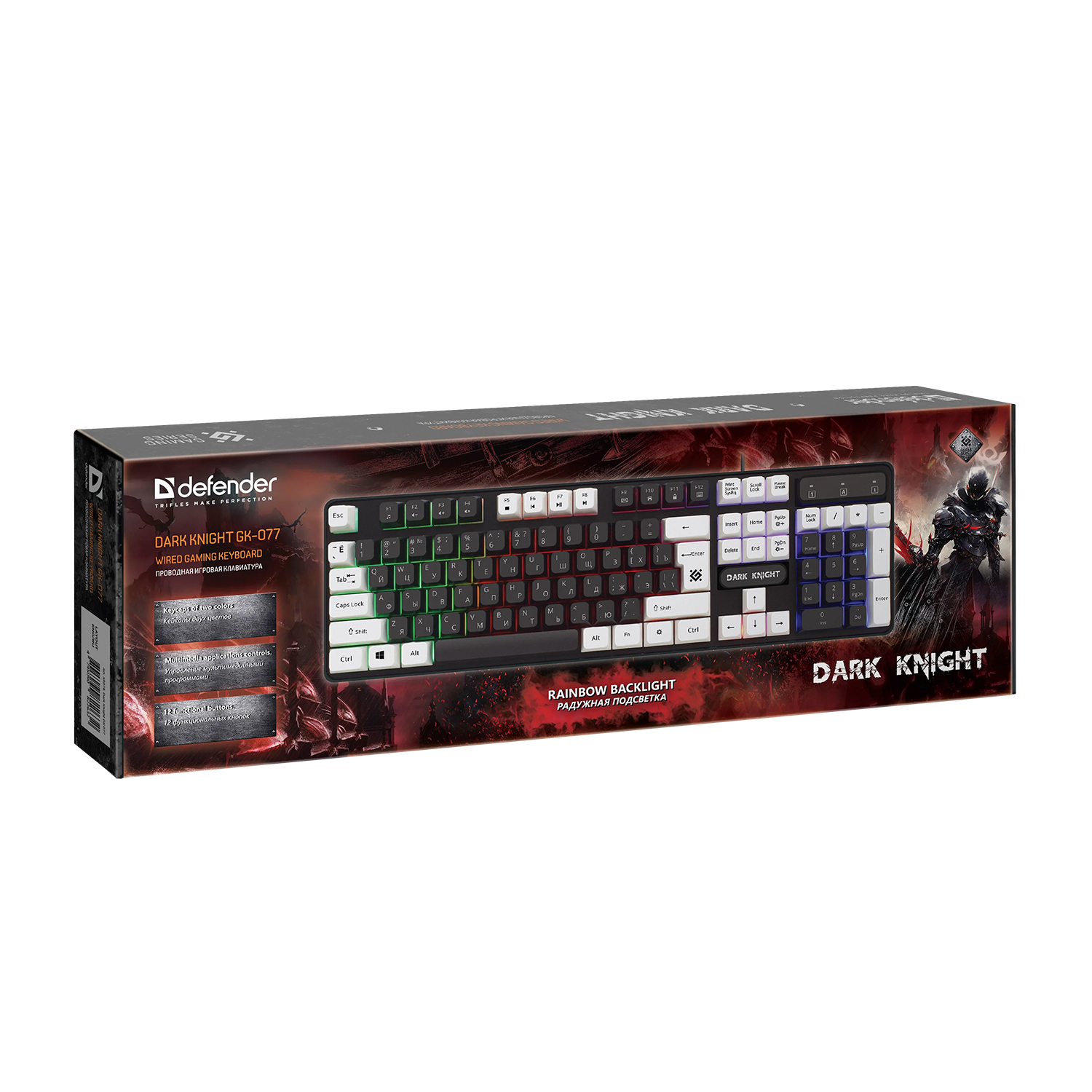 Клавиатура USB, Defender Dark Knight GK-077 RU, Черно/Белая, (45077) KeyBoard Black/White