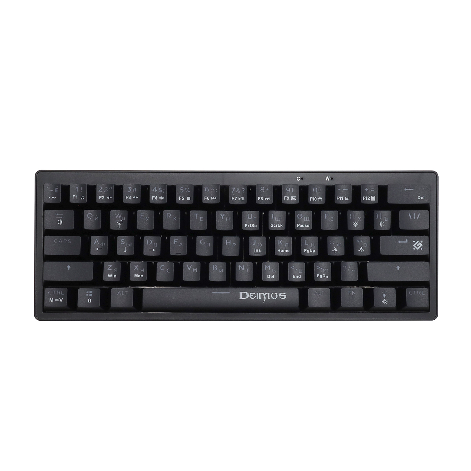 Технология Double injection: символы не сотрутся, так как клавиши отлиты из двух цветов пластика: черный для области кнопки и белый/прозрачный для символов