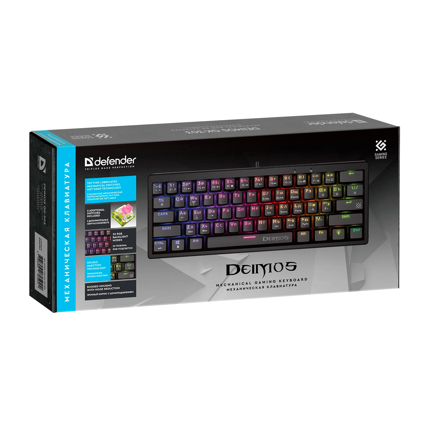 Клавиатура USB, Defender Deimos GK-303 RU, Черный KeyBoard Black, (45303)