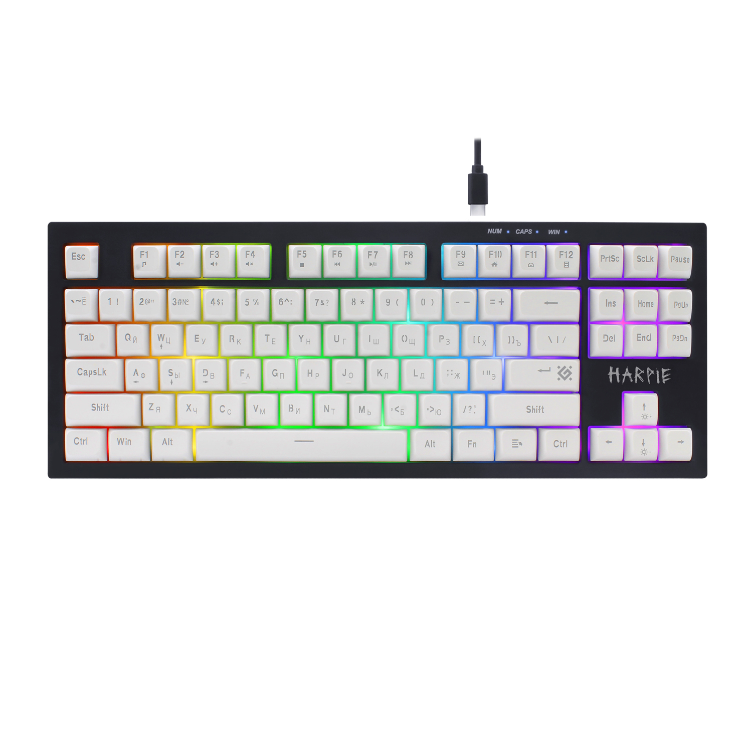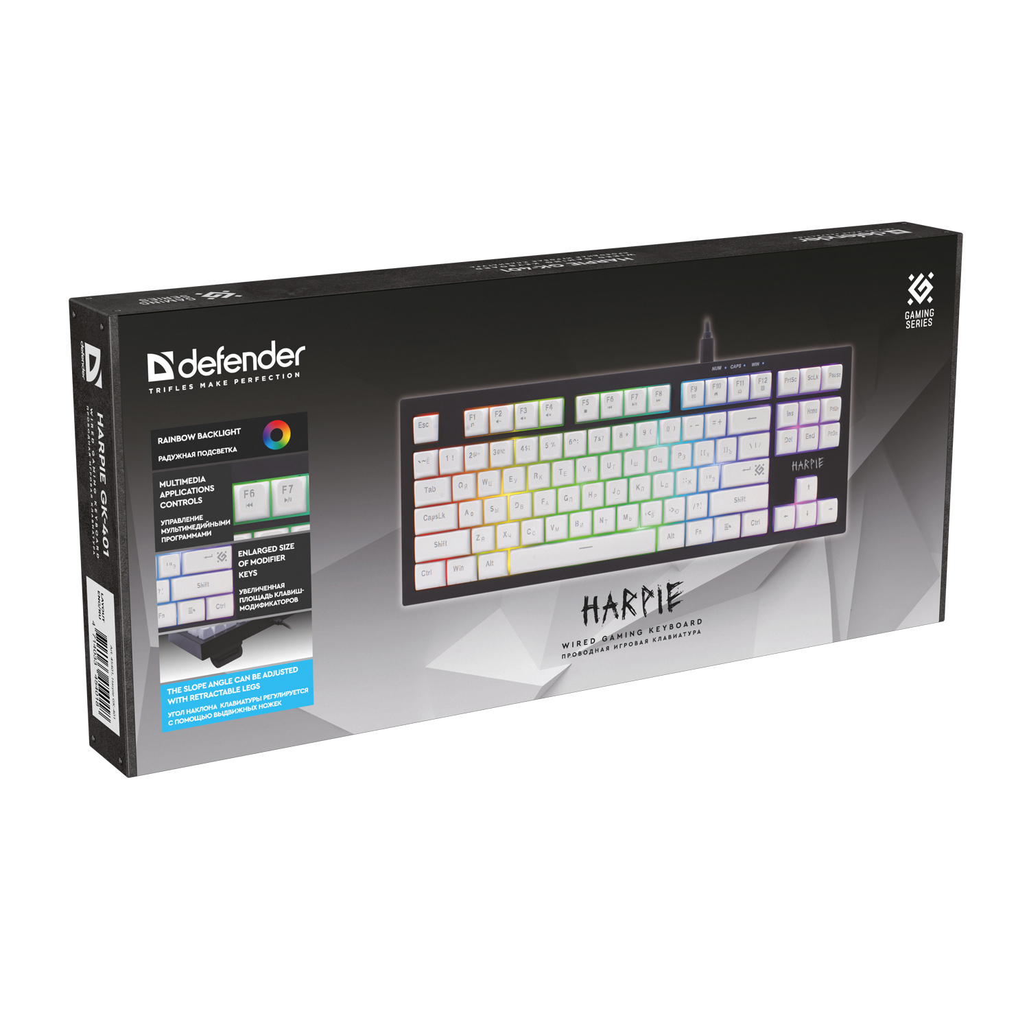 Клавиатура USB, Defender Harpie GK-401 RU, Белый-Черный, (45401) KeyBoard White-Black