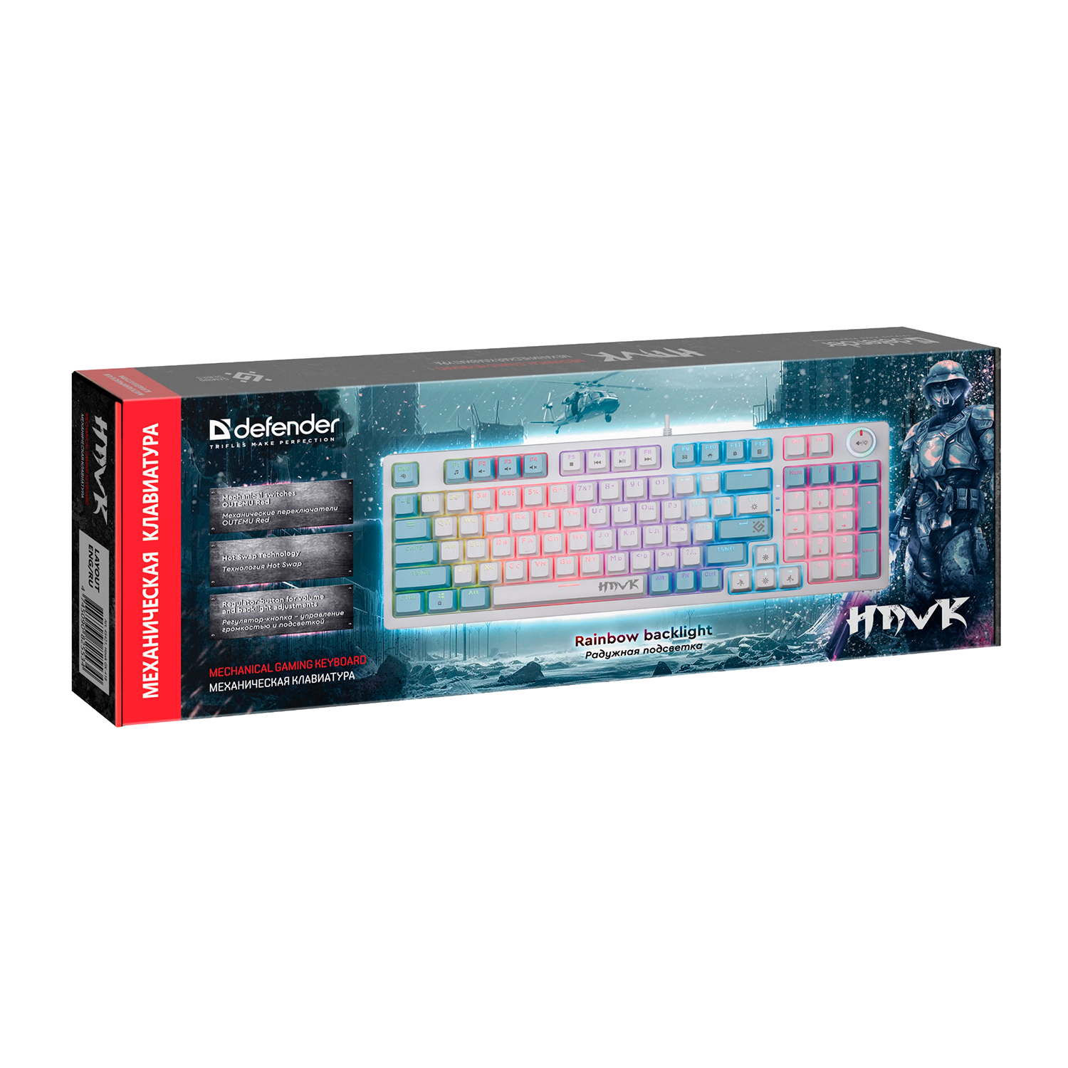 KeyBoard USB, Defender Hawk GK-418 RU, white/blue, (45421)