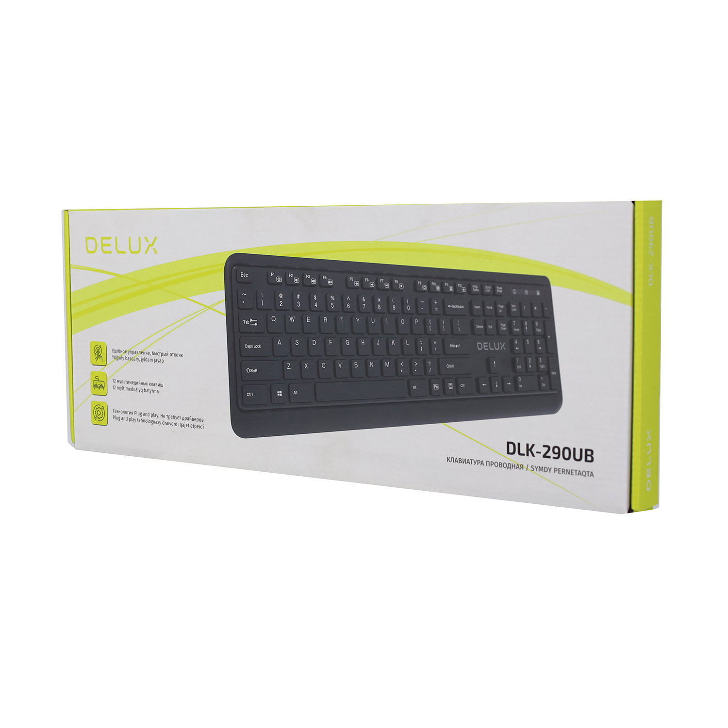 Клавиатура , USB, Delux DLK-290UB, Черный KeyBoard 1,35m cable, Black