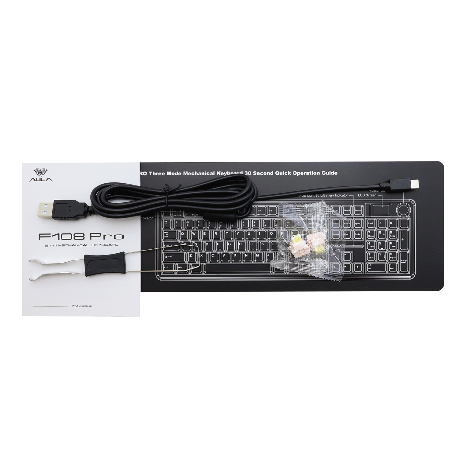 KeyBoard Bluetooth, F108 Pro, Zephyr switch, 104 keys, EN BT/2.4 GHz/USB, Gradient Gray