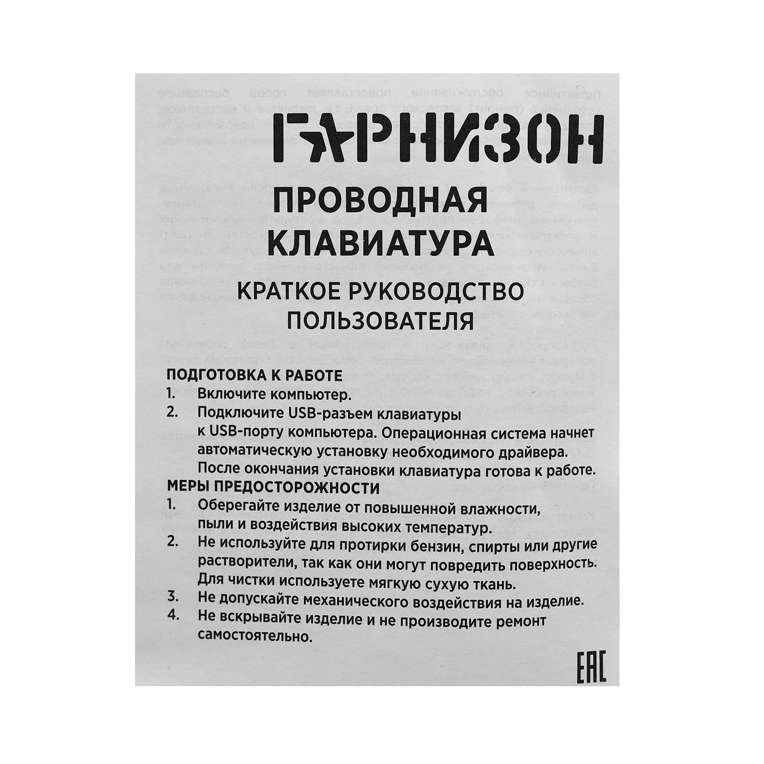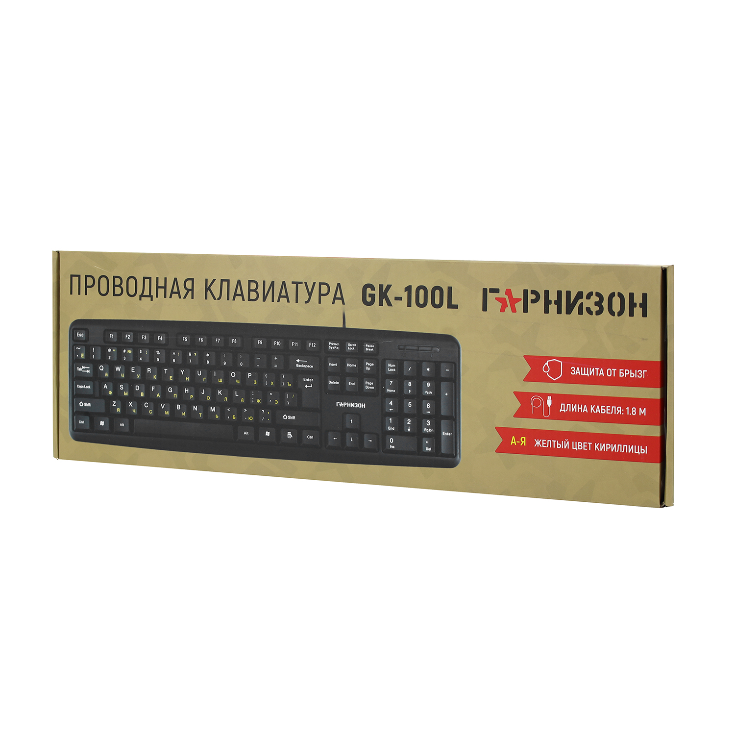 Клавиатура USB, Гарнизон GK-100L, Черный
