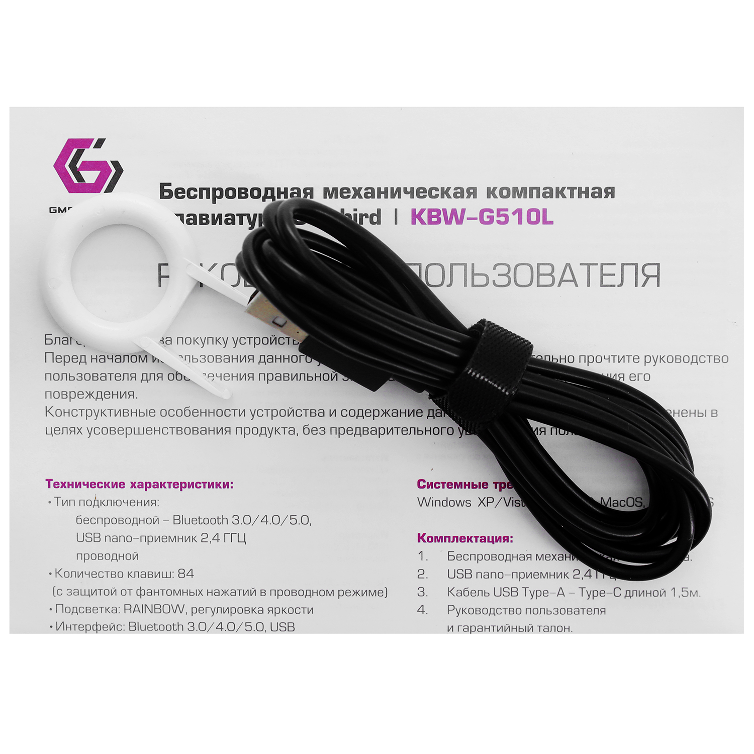 Клавиатура USB, Gembird KBW-G510L, Черный KeyBoard BT/2.4 GHz wireless,1.5m cable, USB, black
