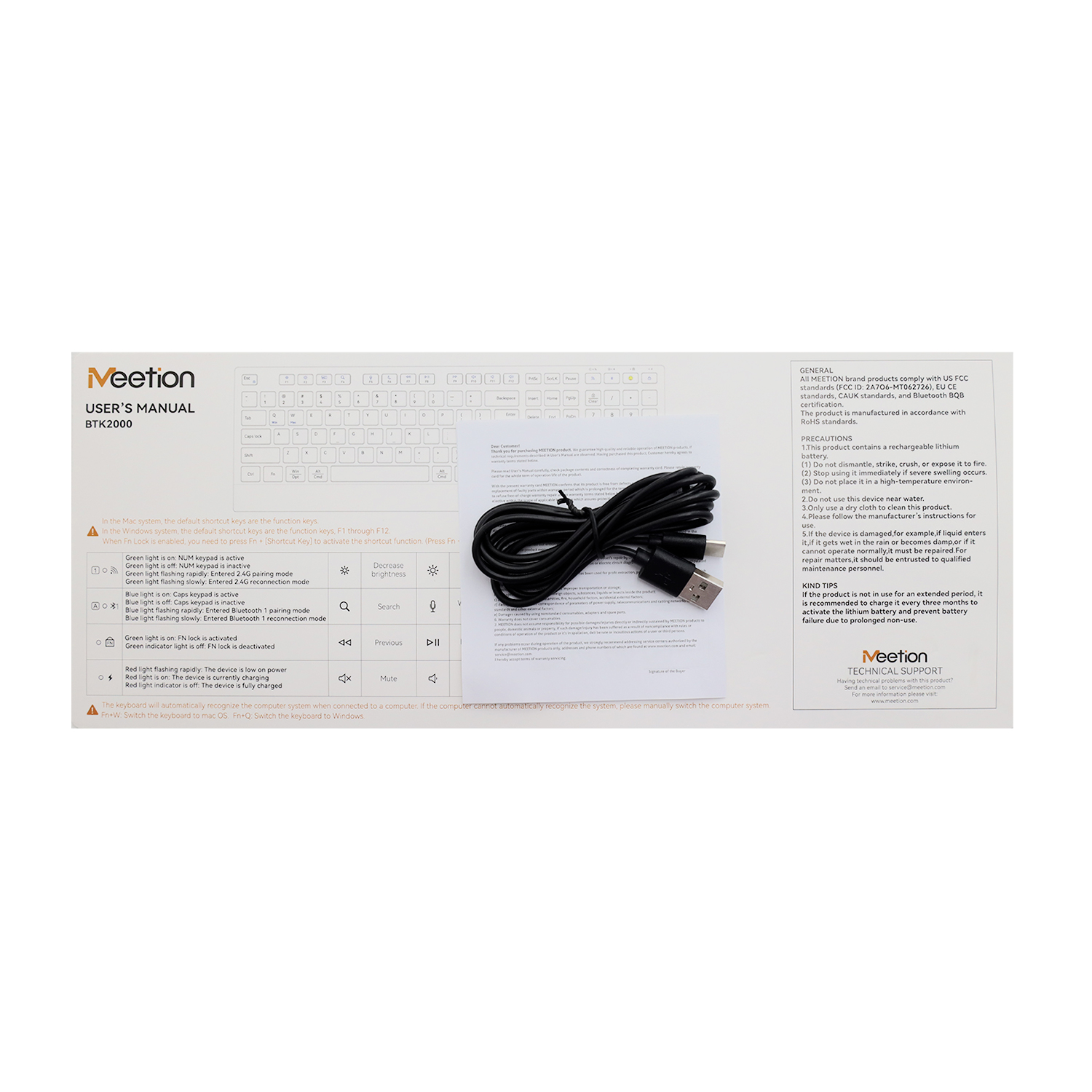 KeyBoard USB, Meetion BTK2000, membrane, 109 keys, 300mAh, EN/RU/KZ,2.4G+BT, Black