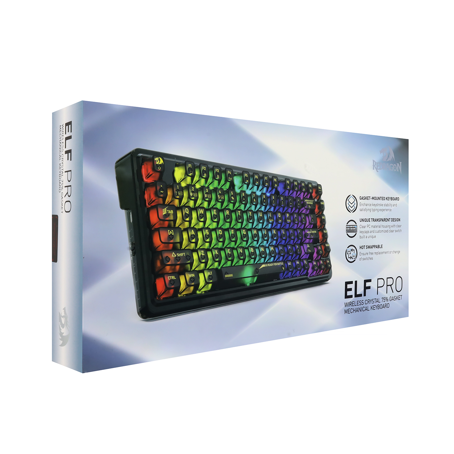 Клавиатура USB, Redragon Elf PRO RU, прозрачный/черный KeyBoard Bluetooth, wireless, transparent/black, (71742)