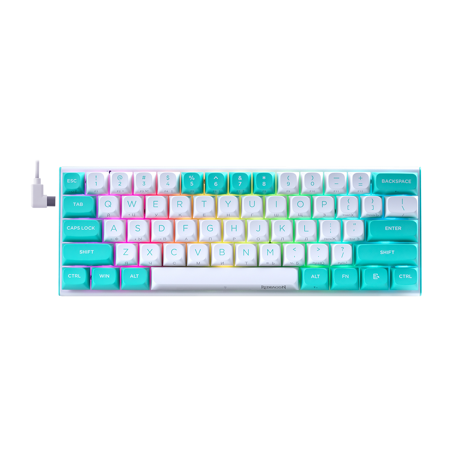 Клавиатура USB, Redragon Fidd RU, бирюзовый/белый KeyBoard turquoise/white, (72187)
