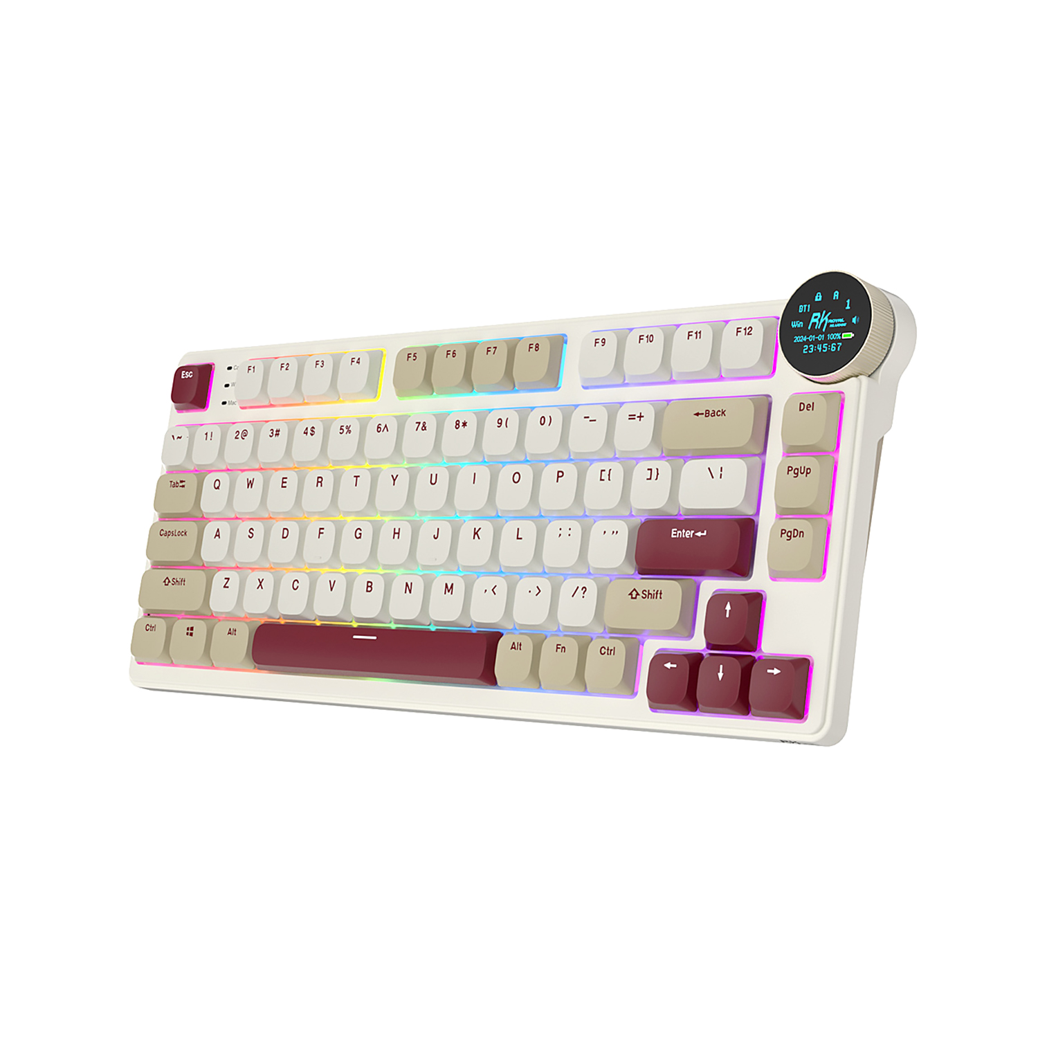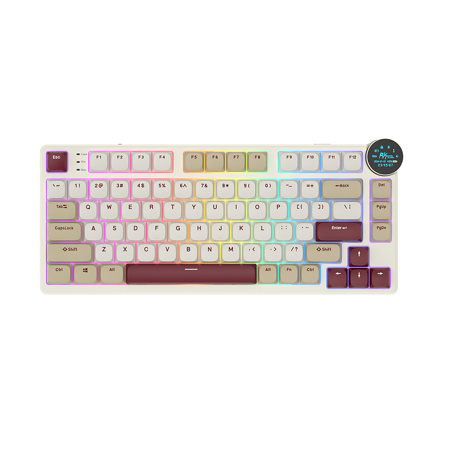 KeyBoard USB, Royal Kludge RK N80, mechanical, Red switch, 80 keys, 2,4/BT/cable, LCD, Rosy Clouds