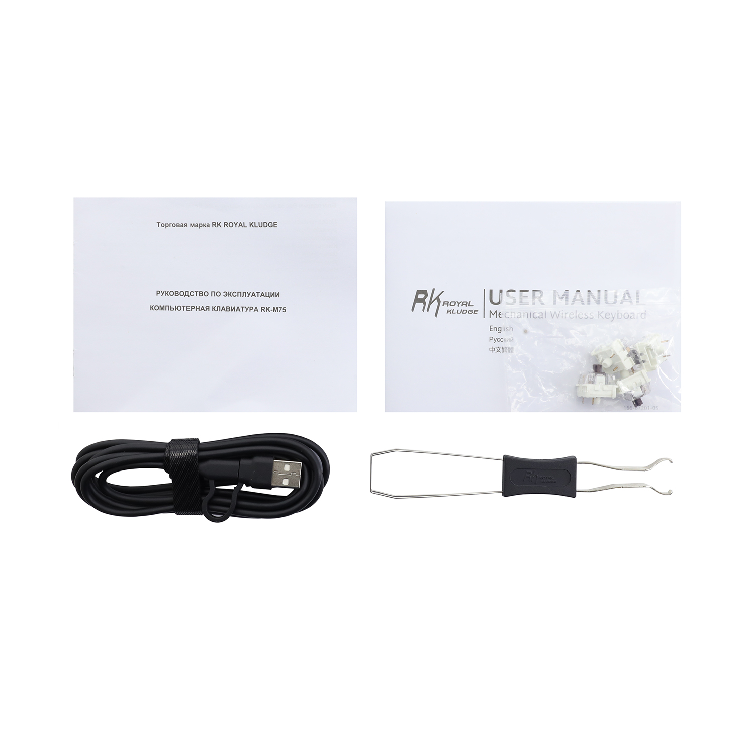 Клавиатура USB, Royal Kludge RKM75 KeyBoard mechanical, Brown switch, 81 keys, 2,4/BT/cable, Phantom
