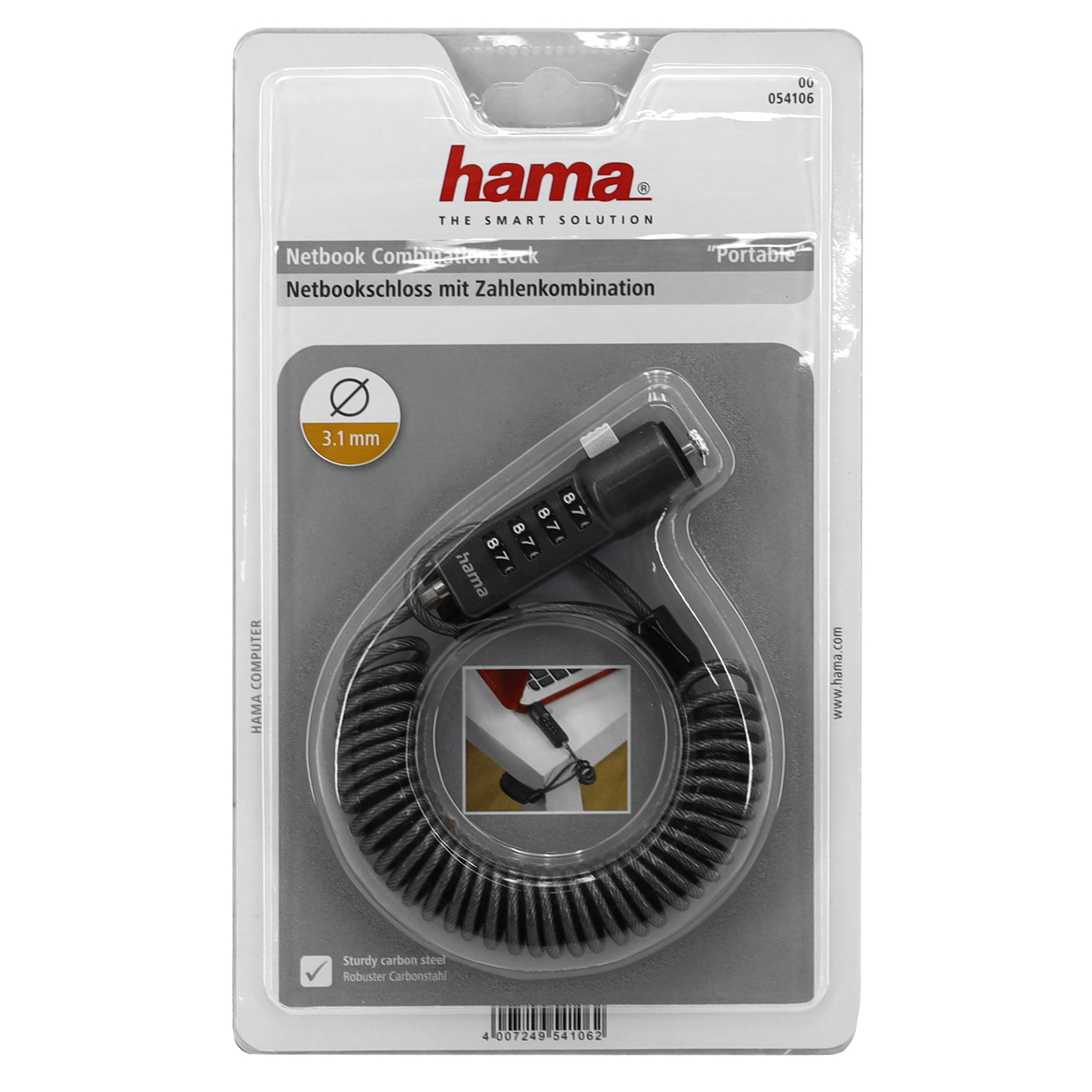 Security lock for notebook, Hama 00054106, кодовый замок (4 цифры), 1 м