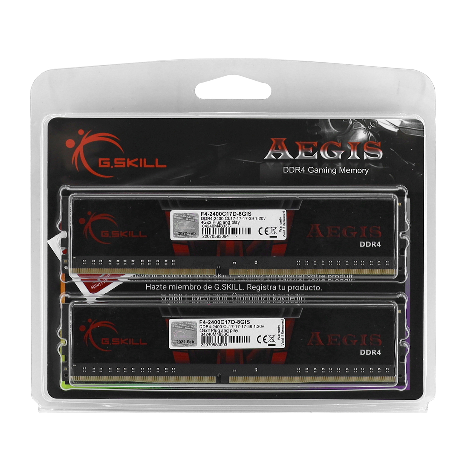 Комплект модулей памяти G.Skill Aegis, F4-2400C17D-8GIS, DDR4, 8 GB DIMM kit <2400MHz> (2x4GB), 17-17-17-39