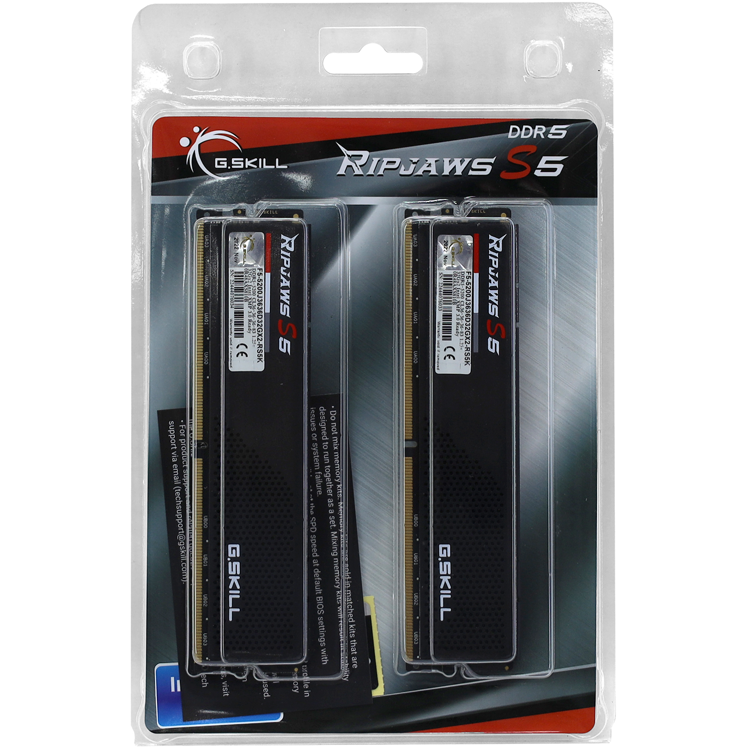 Комплект модулей памяти G.Skill Ripjaws S5, F5-5600J3636D32GX2-RS5K, DDR5, 64 GB, black DIMM kit <5600MHz> (2x32GB), 36-36-36-89
