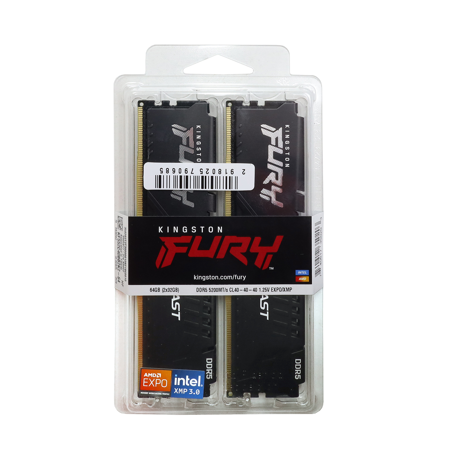 Комплект модулей памяти Kingston Fury Beast, KF552C40BB2K2-64, DDR5, 64 GB, Черный DIMM kit <5200MHz> (2x32GB), CL40