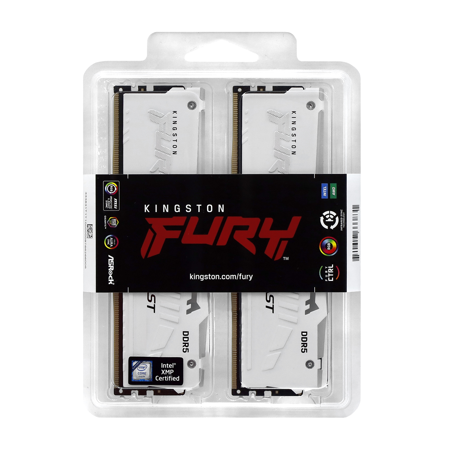 Комплект модулей памяти Kingston Fury Beast RGB, KF564C32BWAK2-32, DDR5, 32 GB, white DIMM kit <6400MHz> (2x16GB), CL32