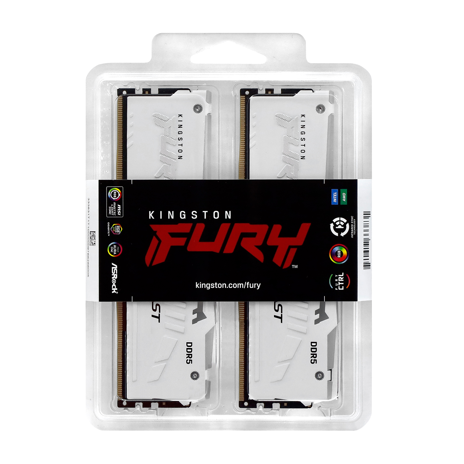 Комплект модулей памяти Kingston Fury Beast RGB (AMD+Intel), KF564C32BWEAK2-64, DDR5, 64 GB, white DIMM kit <6400MHz> (2x32GB)