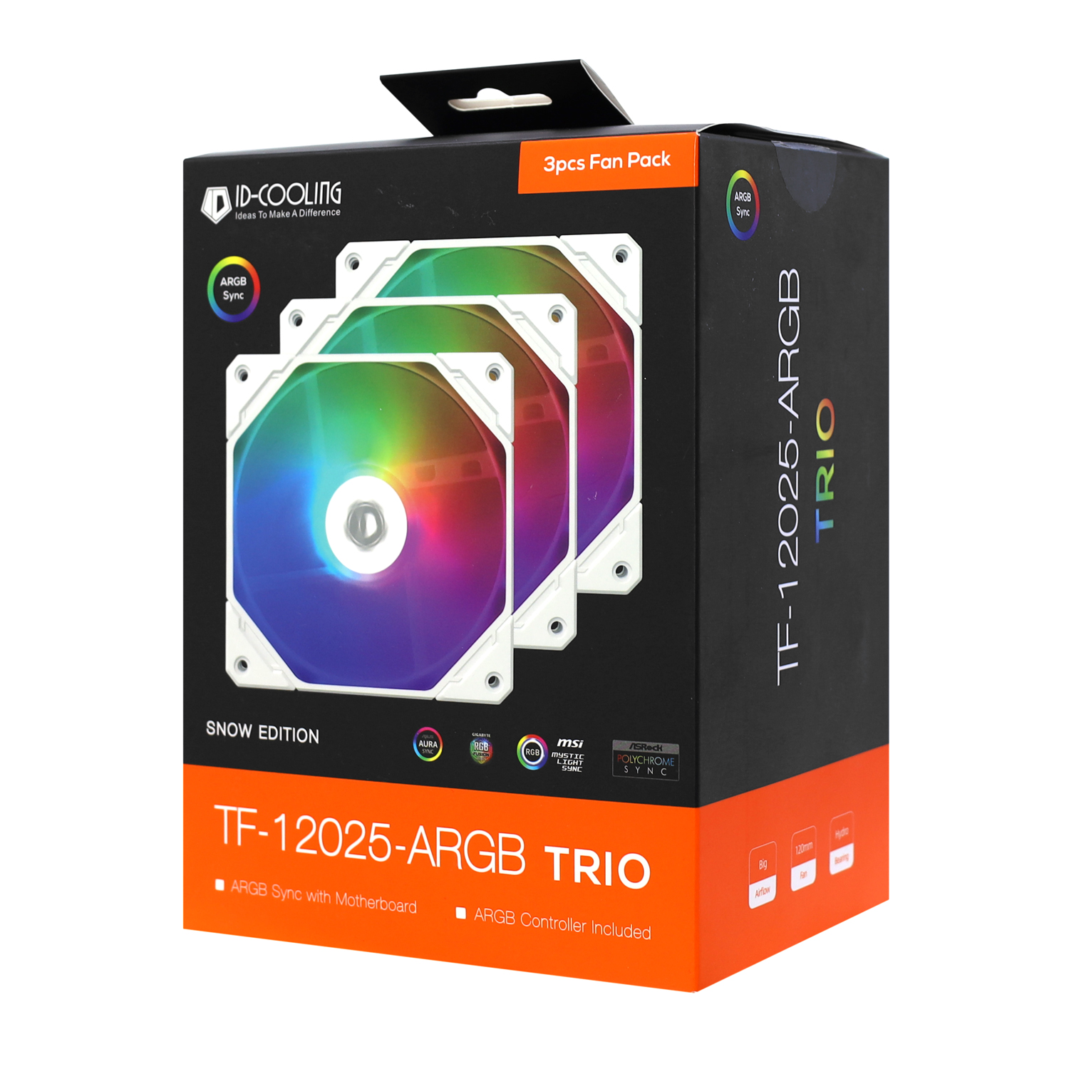 Комплект Вентилятор ID-Cooling, TF-12025-ARGB TRIO SNOW, 12cm, Fan kit for case, x 3, 500-1500rpm, 68.2CFM, 4pin