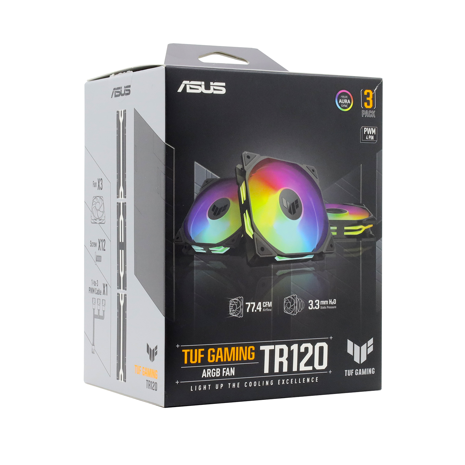Fan kit for case, 12cm x 3, Asus TUF Gaming TR120 FAN ARGB, 0-2000rpm, black, 4pin