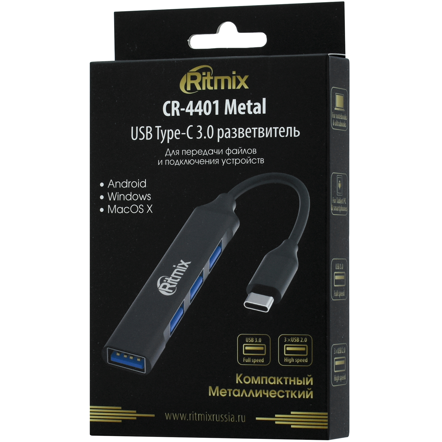 Концентратор USB 3.2 Ritmix CR-4401, Металл