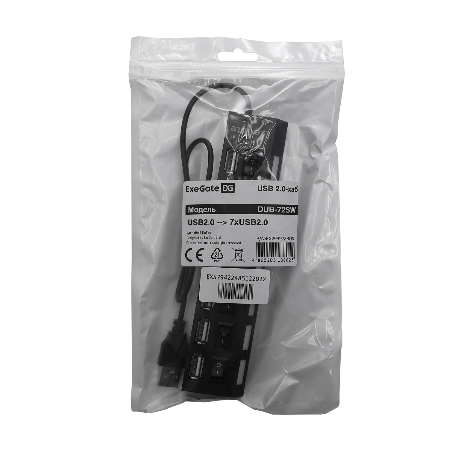 Концентратор USB ExeGate DUB-72SW Hub 7 port, USB 2.0, black