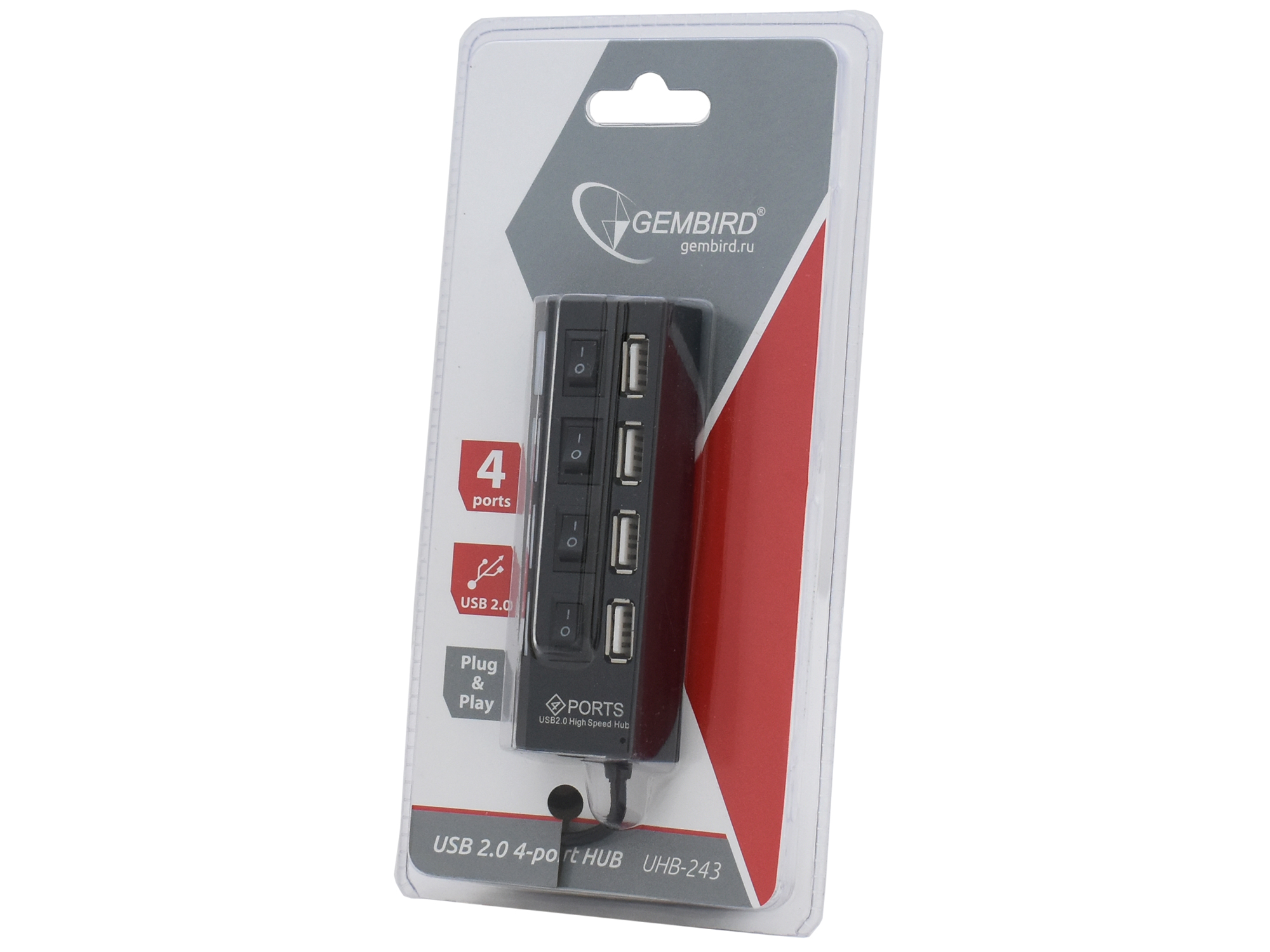 Концентратор USB Gembird UHB-243-AD Hub 4 port, USB 2.0, black