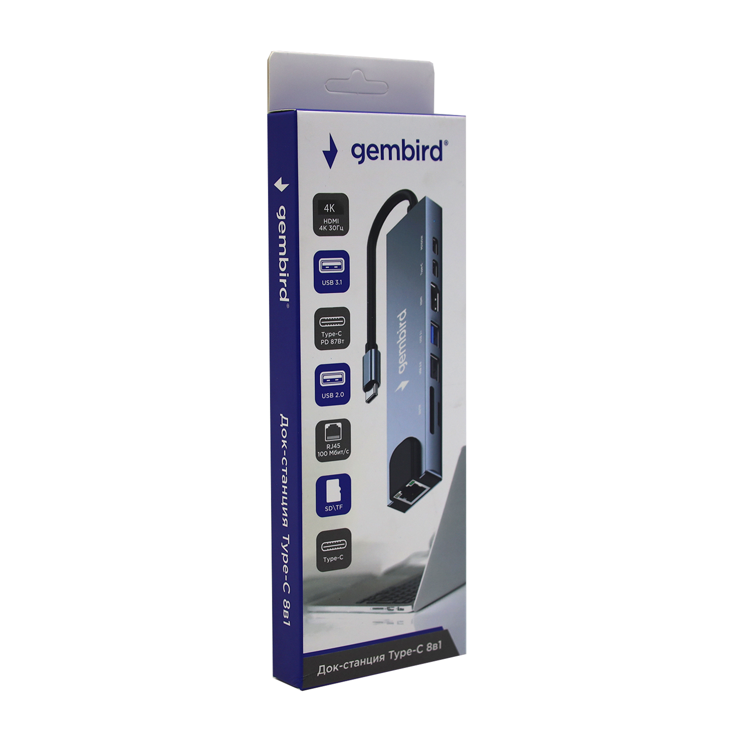 Концентратор USB Gembird UHB-D3, Серый Hub 3 port, USB Type-C/2xType-A/HDMI/SD/microSD/Rj45, grey