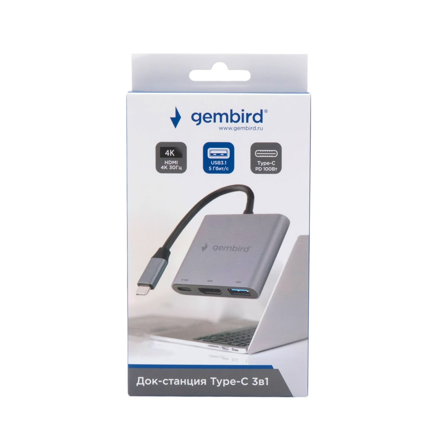 Концентратор USB Type-C, Gembird UHB-D2 Hub, USB 3.1, HDMI/Type-C/Type-A