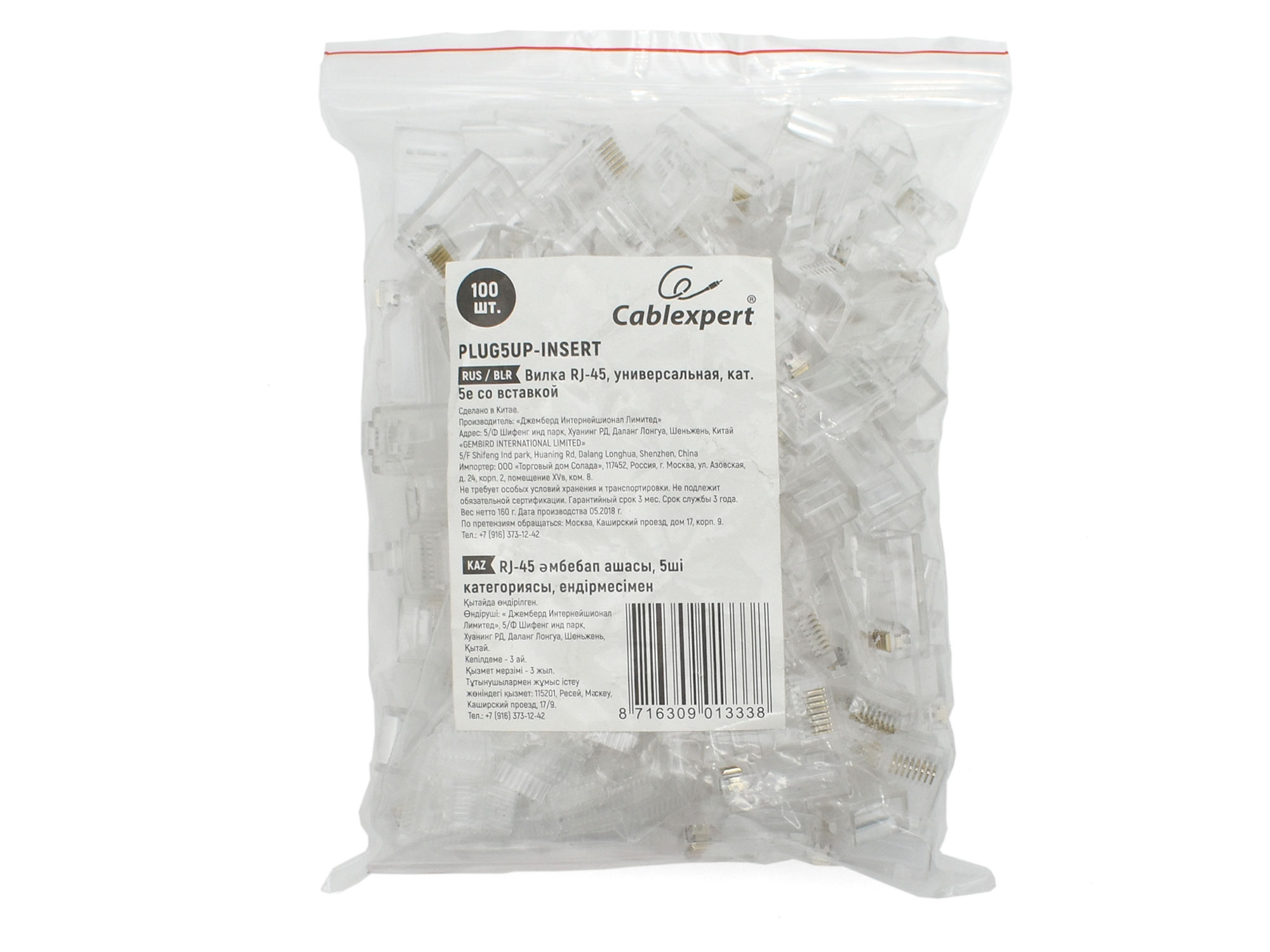 Коннектор RJ-45 Cablexpert PLUG5UP-INSERT, упаковка Connector Cat.5, for UTP, (в пакете 100 штук)