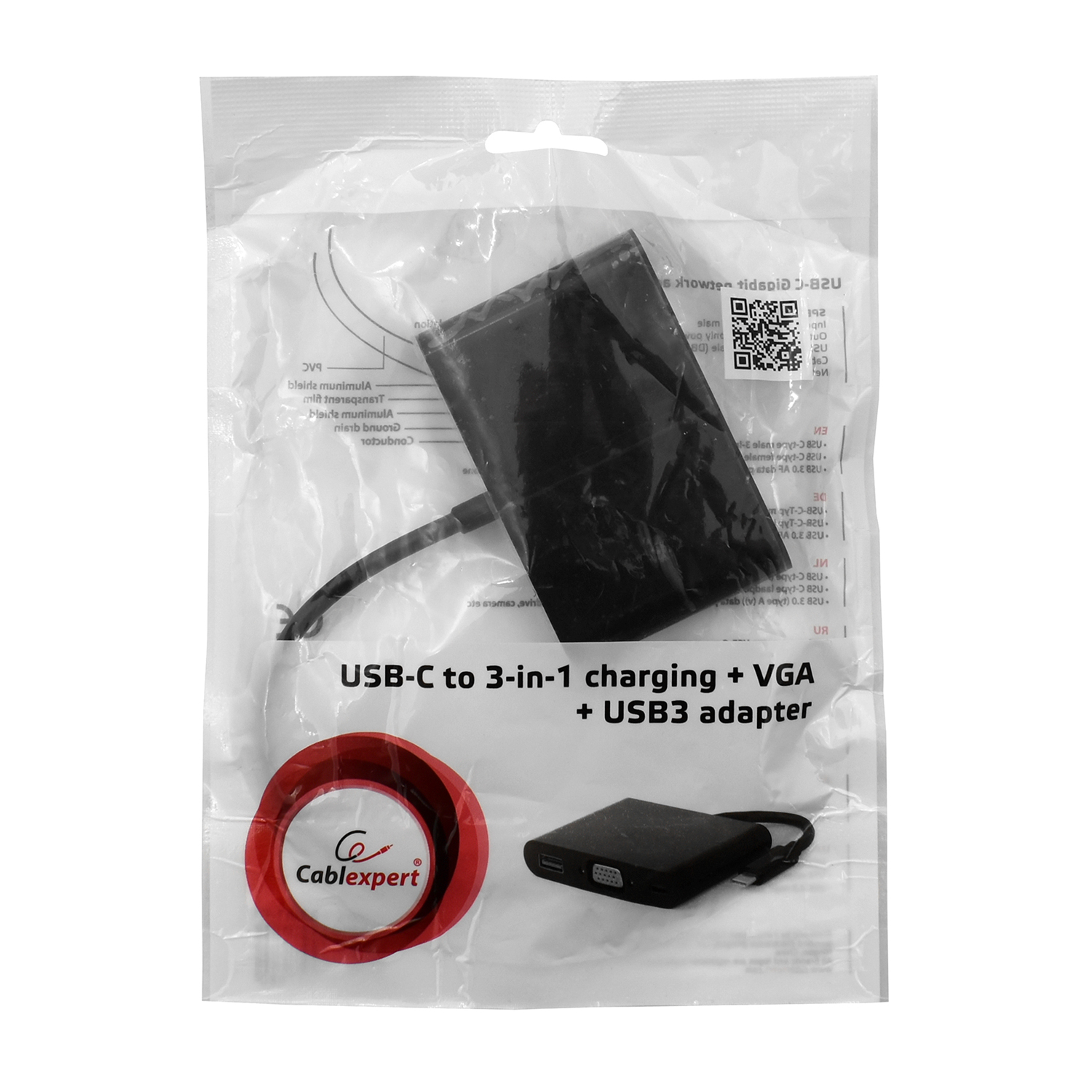Конвертер USB Type-C 3.1 -> VGA, USB, TypeC, Cablexpert, A-CM-VGA3in1-01